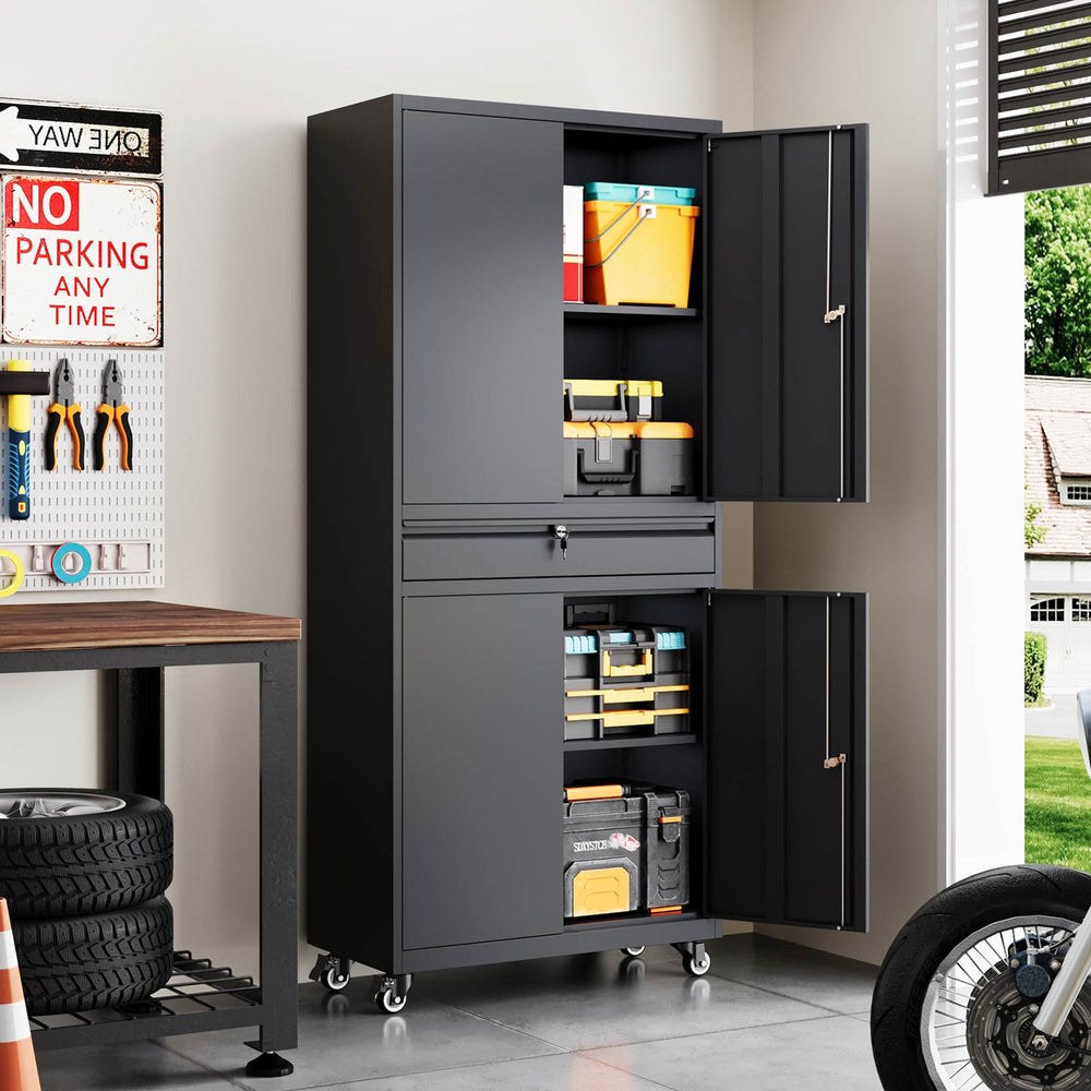 Yizosh 71"H Lockable Metal Storage Cabinet with 2 Doors & 5 Adjustable Shelves