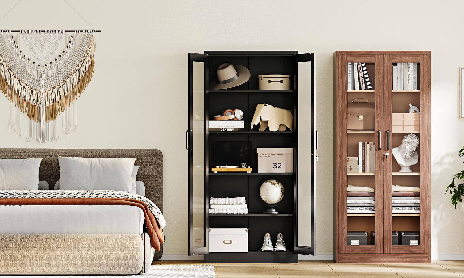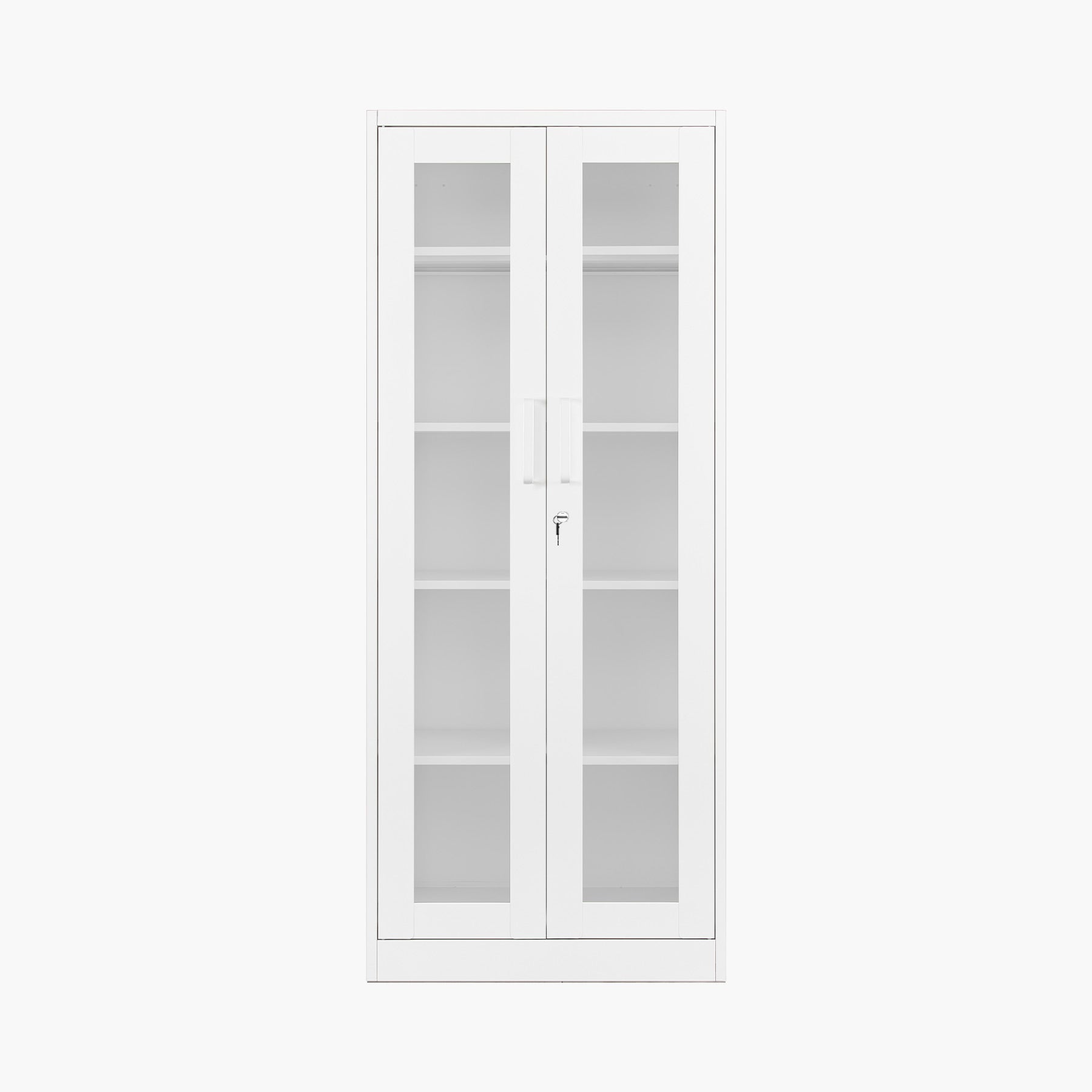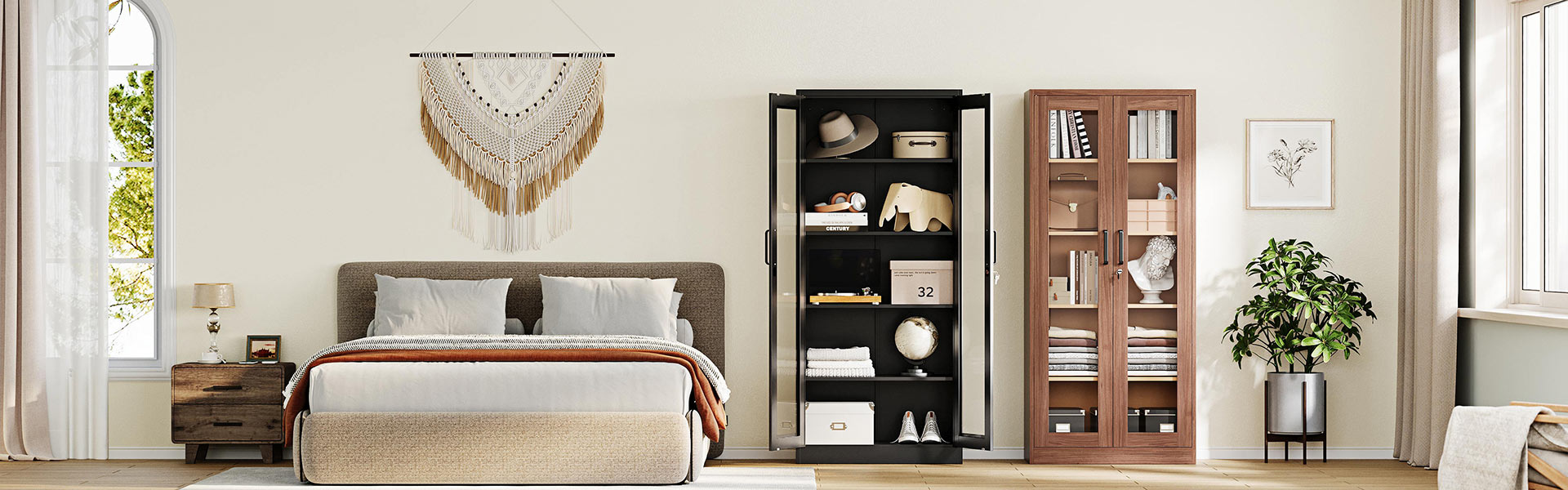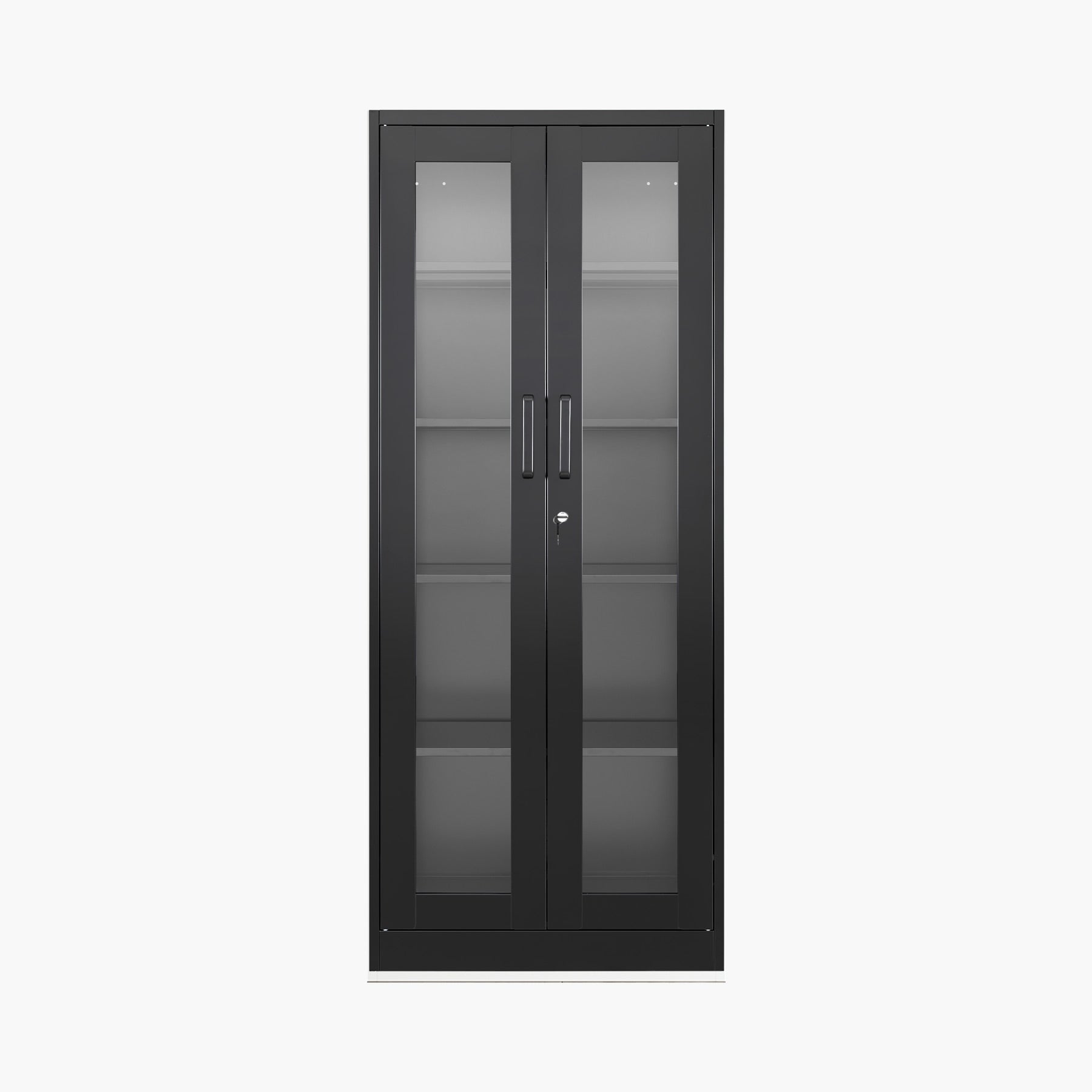 Locking Display Cabinet with Glass Doors: Equipped with 4 adjustable shelves to provide flexible storage and display space. Perfect for showcasing items like books, artifacts, or medicines, while the lock ensures secure storage for sensitive items.