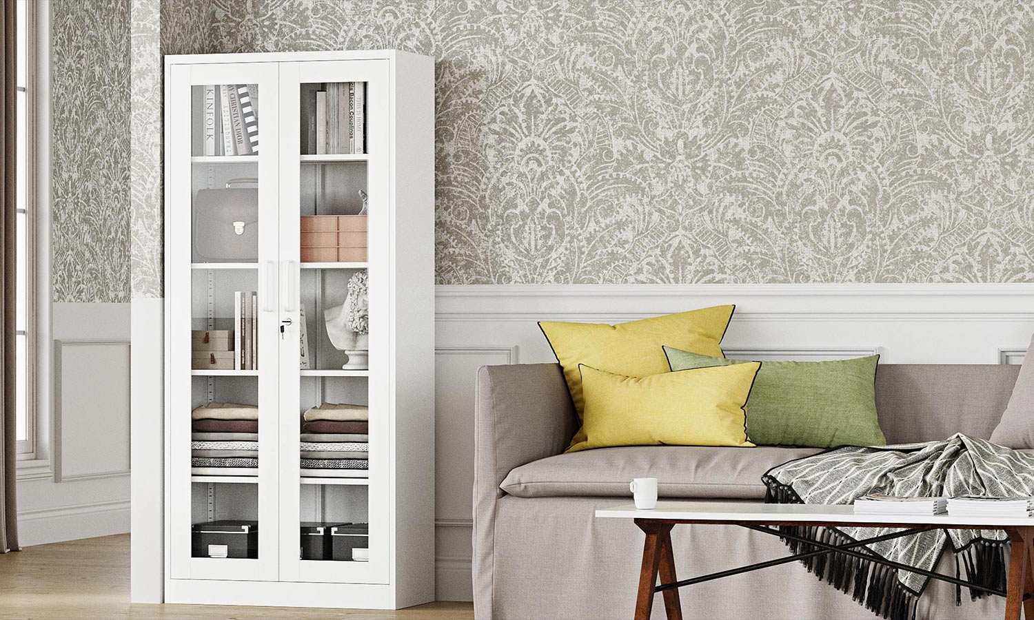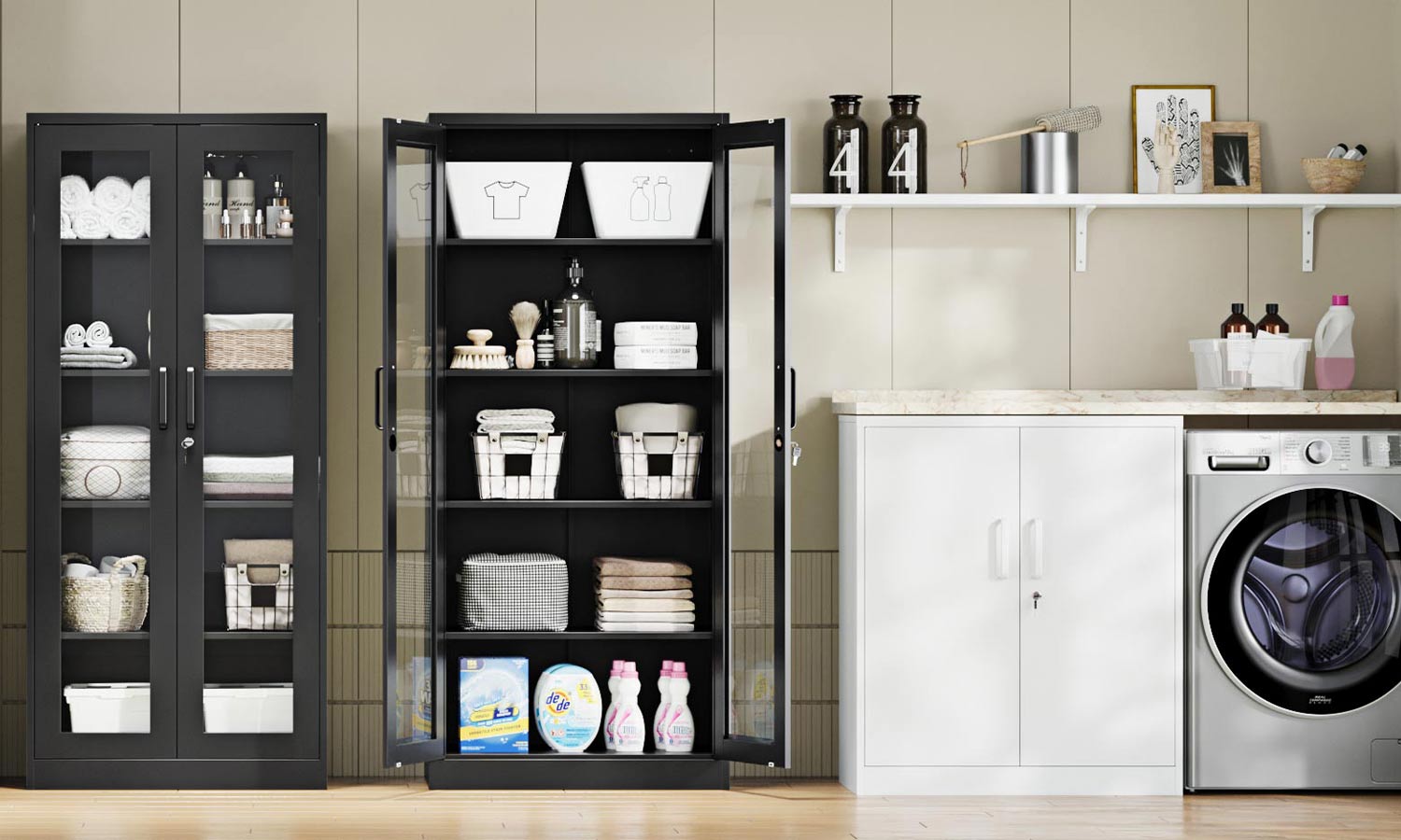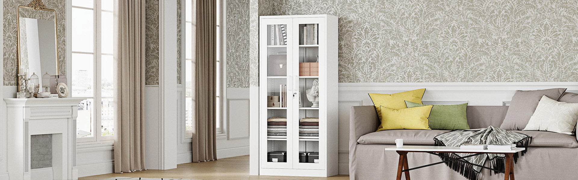 Locking Display Cabinet with Glass Doors: Equipped with 4 adjustable shelves to provide flexible storage and display space. Perfect for showcasing items like books, artifacts, or medicines, while the lock ensures secure storage for sensitive items.