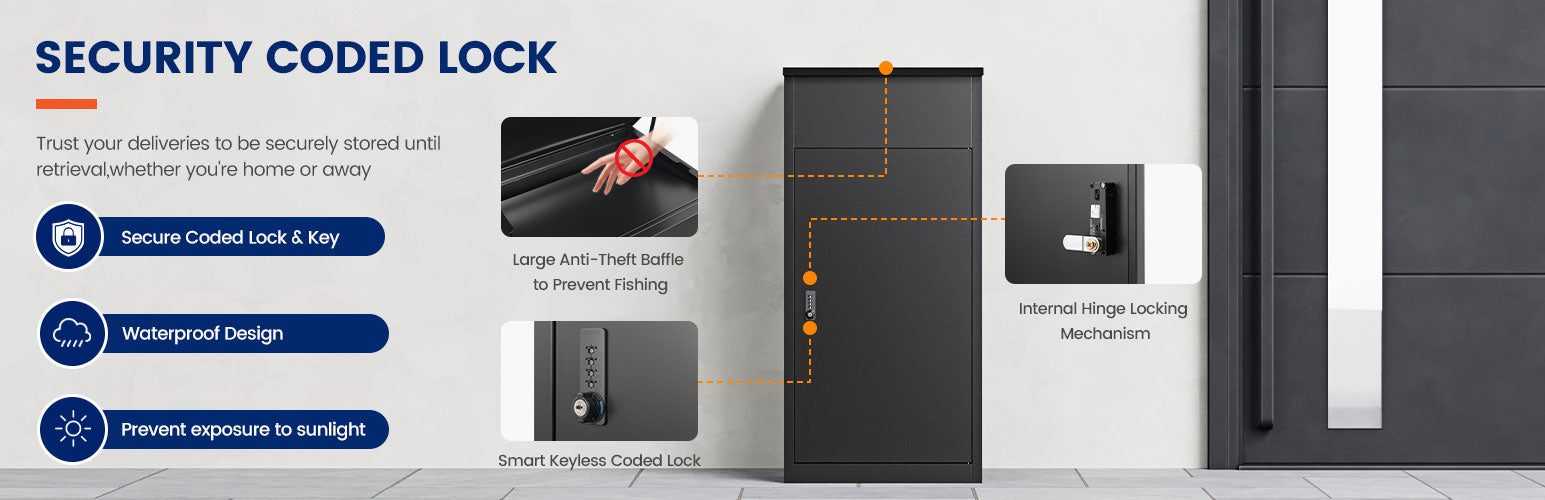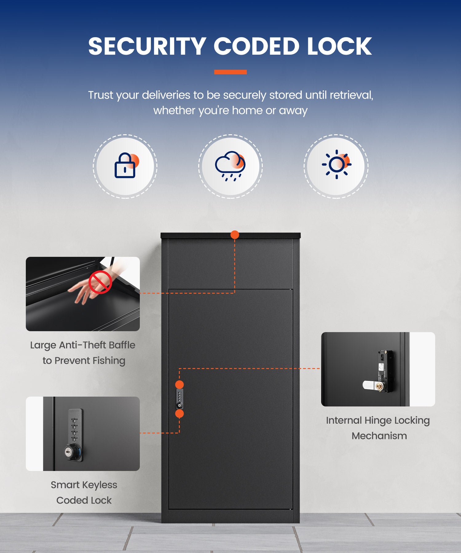 - 41.3"H Outdoor Package Delivery Box with Coded Lock and Anti-Theft Design