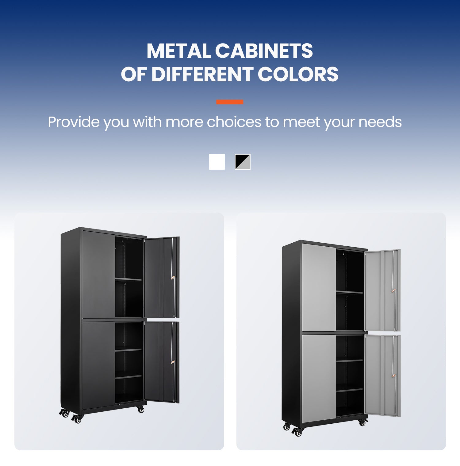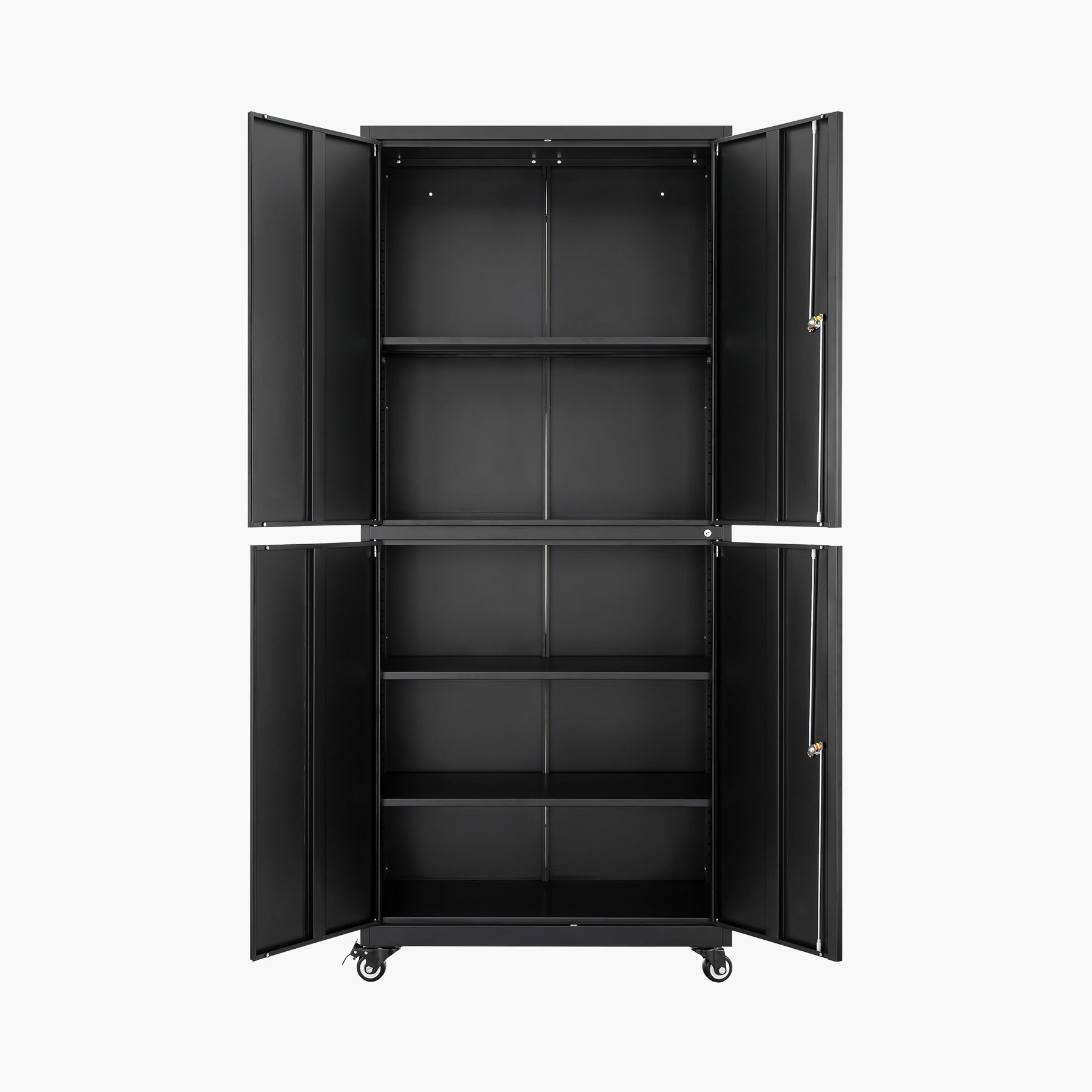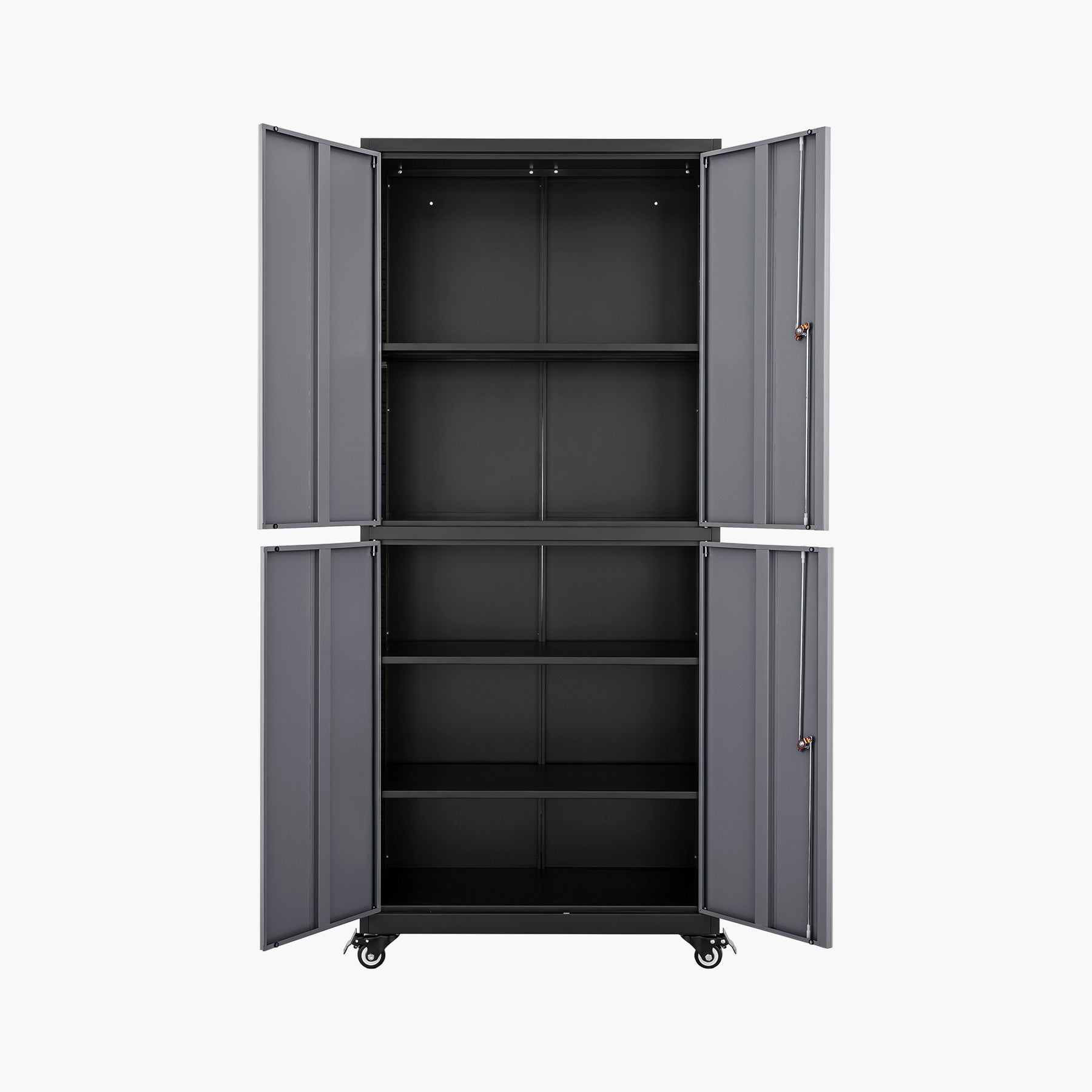- 73" Rolling Metal Cabinet with Lock, 4 Doors & Adjustable Shelves
