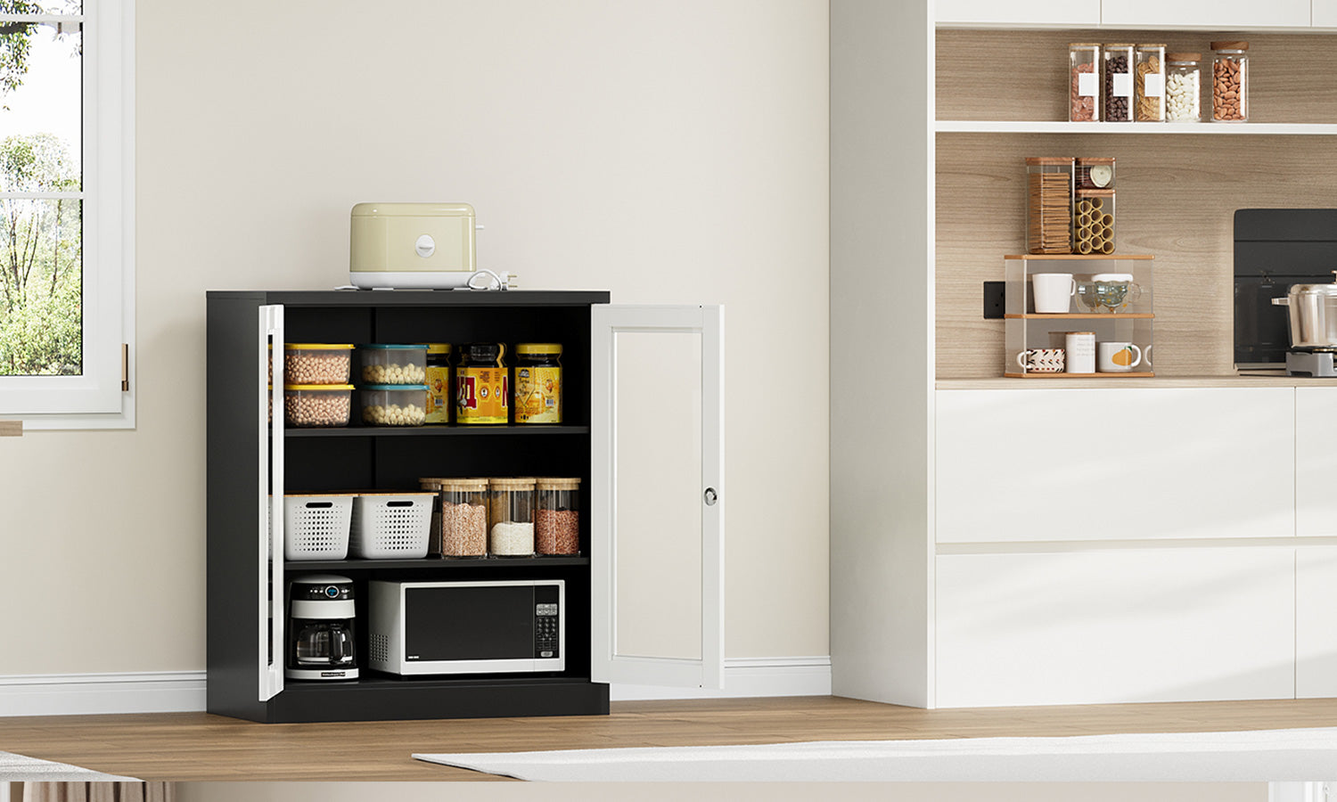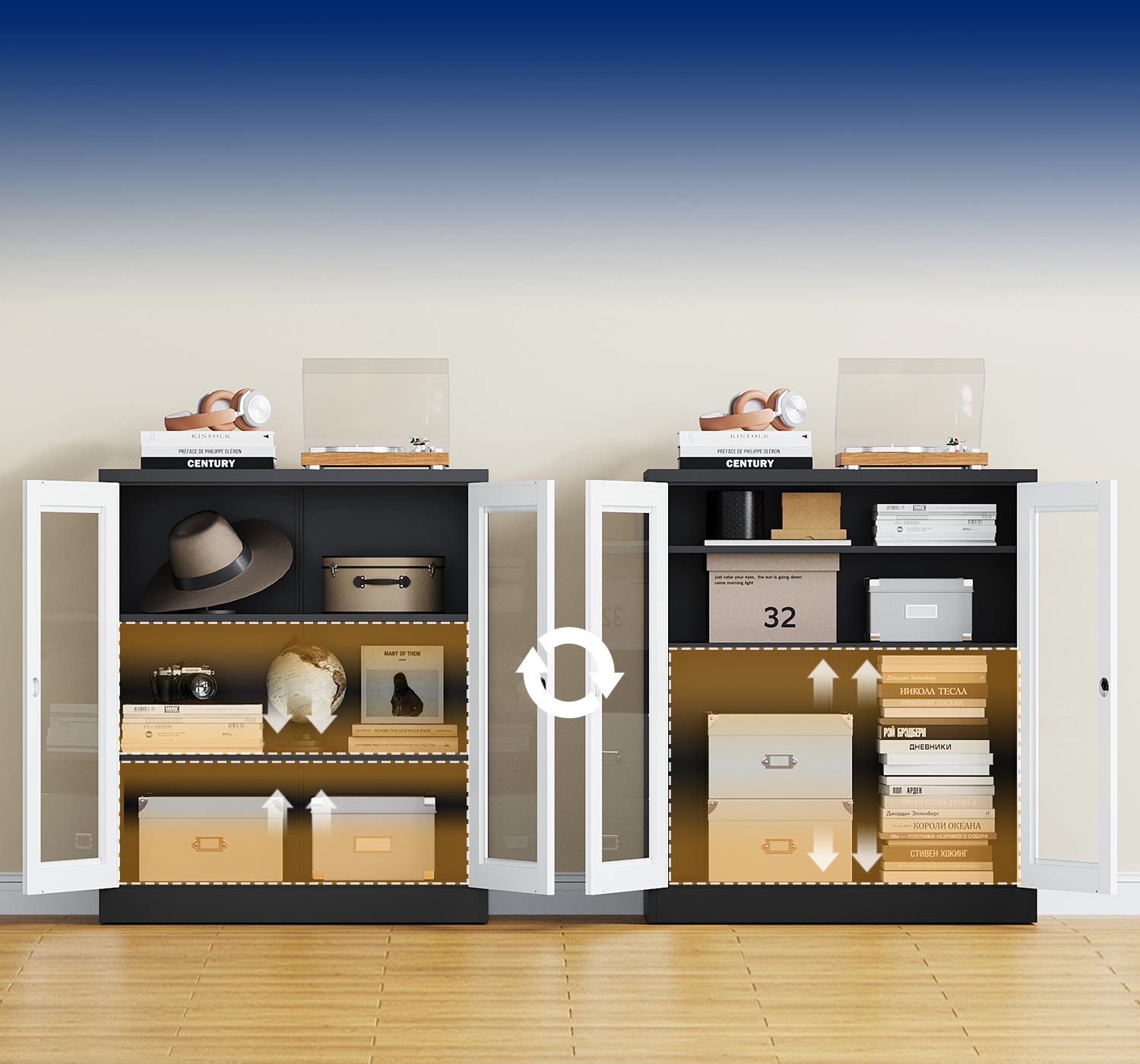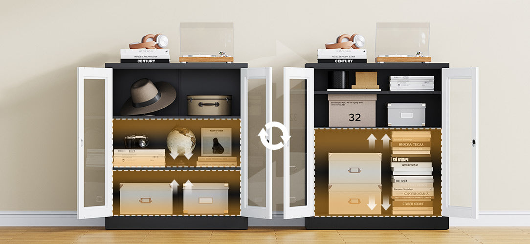 Display Cabinet with Acrylic Doors: Two adjustable shelves allow flexible storage and display of artifacts, books, drinkware, and more; suitable for home, office, hospital, or school.