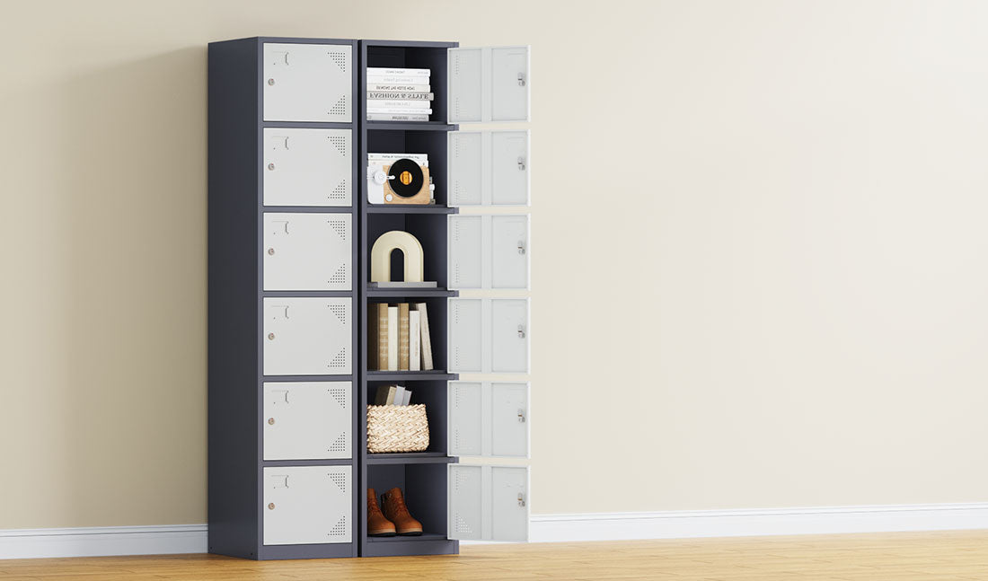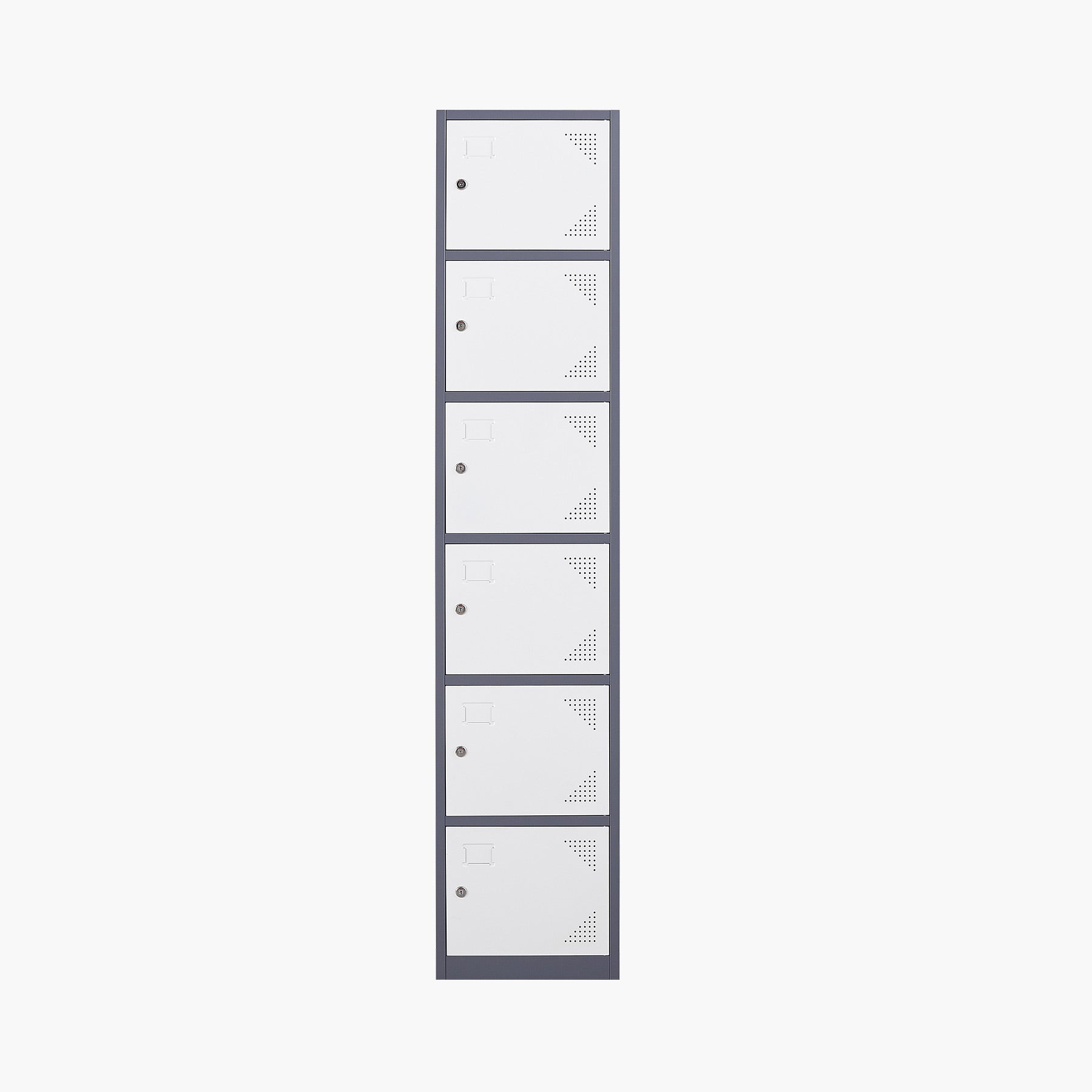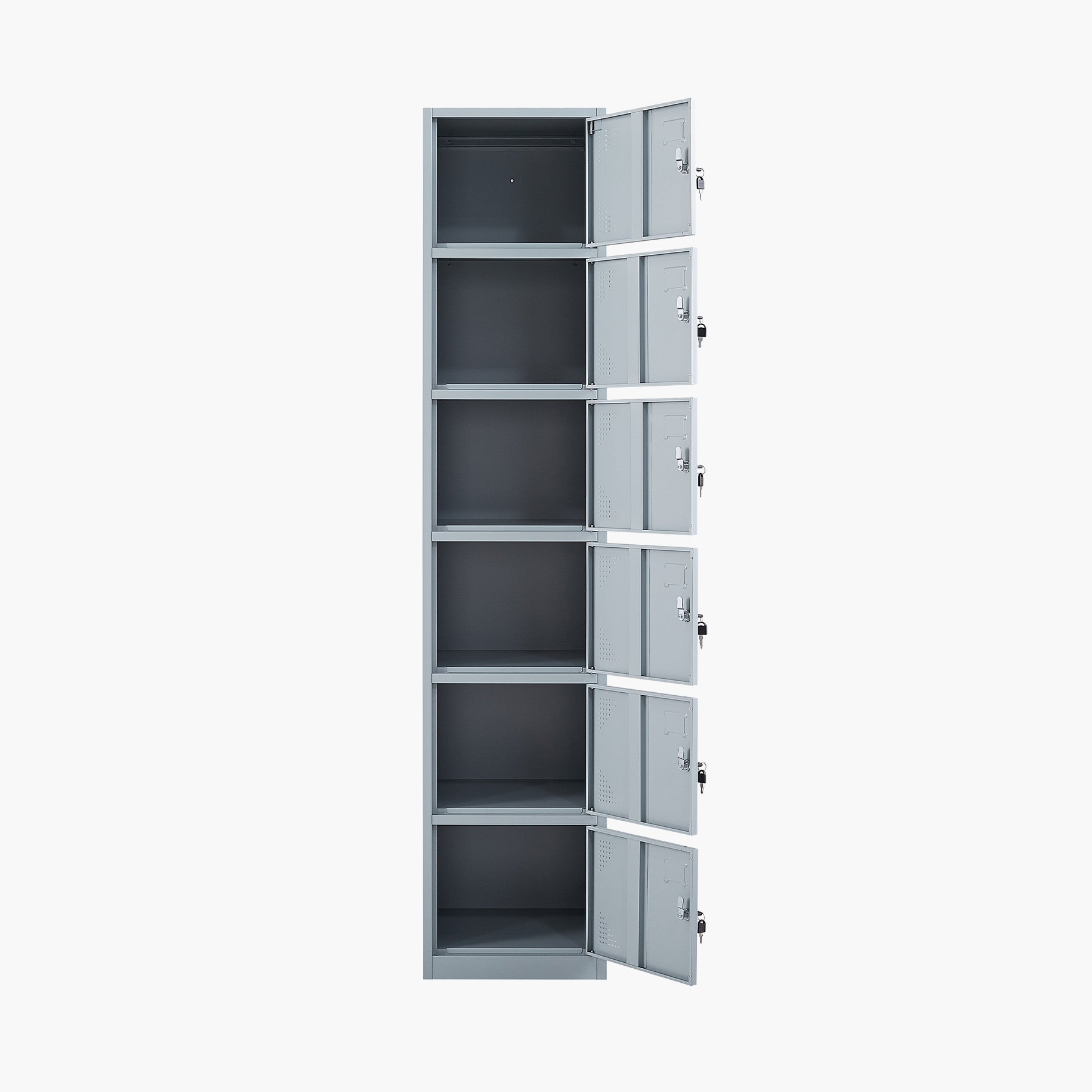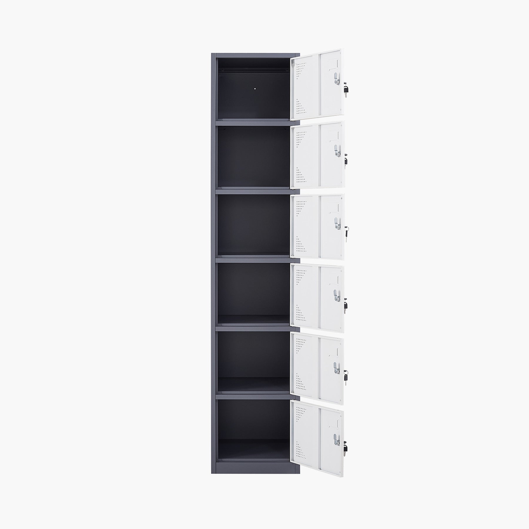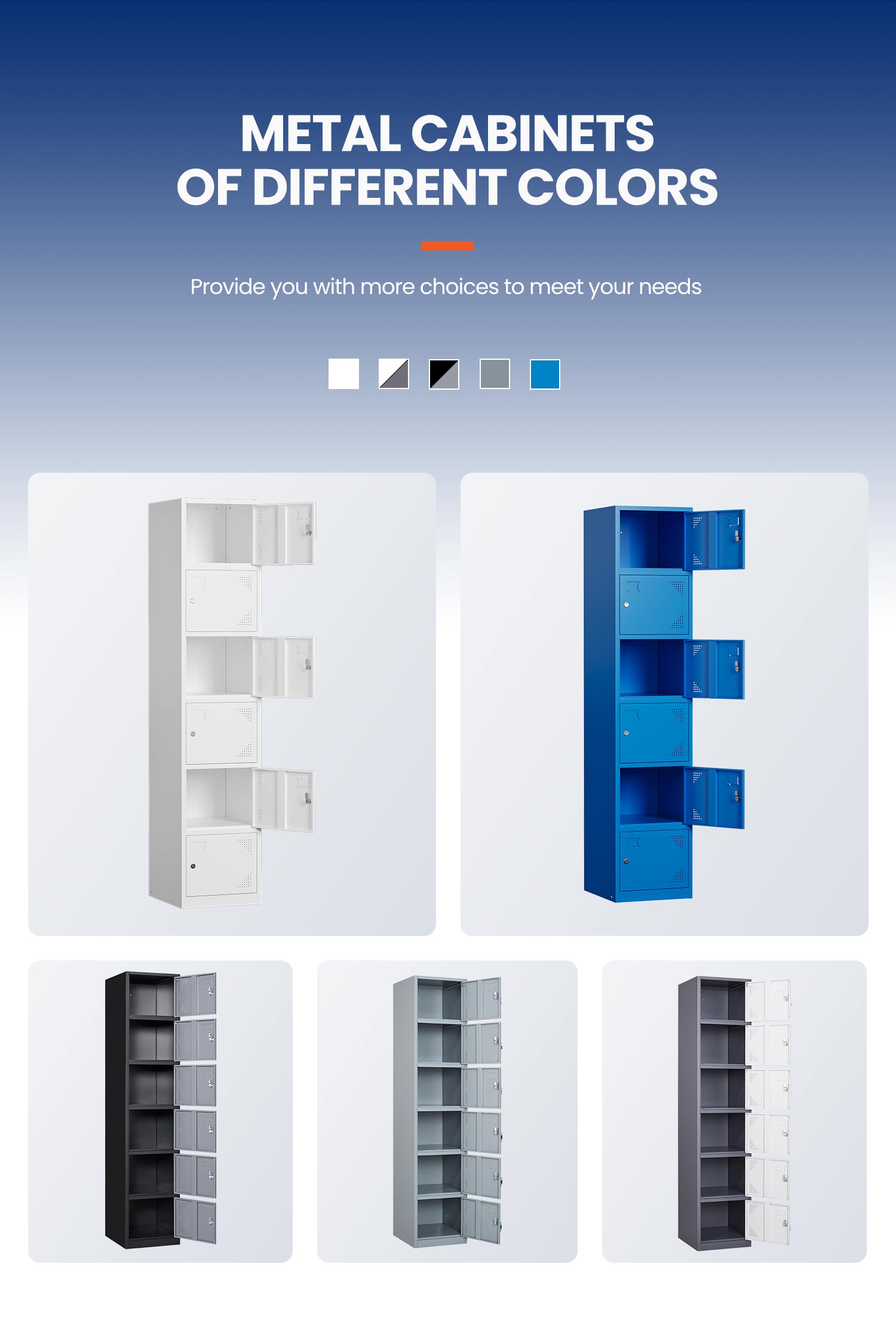 71" 6-door metal locker cabinet with secure key locks and ventilated compartments. Built with durable SPCC steel, this compact storage solution offers privacy, ventilation, and organization—ideal for schools, gyms, offices, homes, or garages.