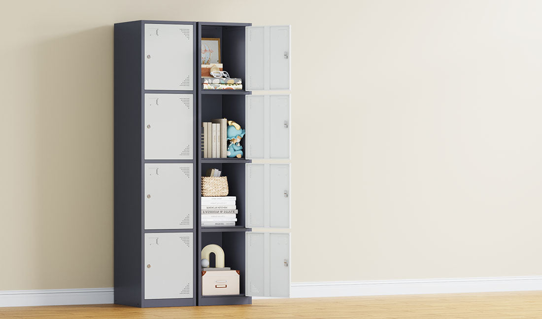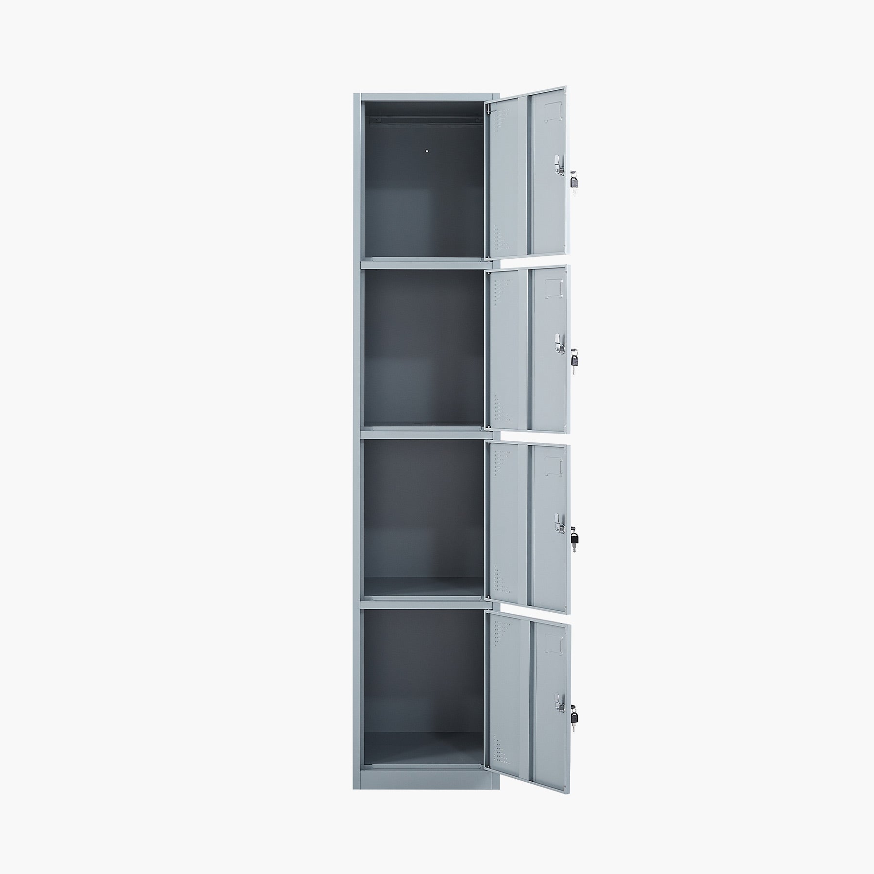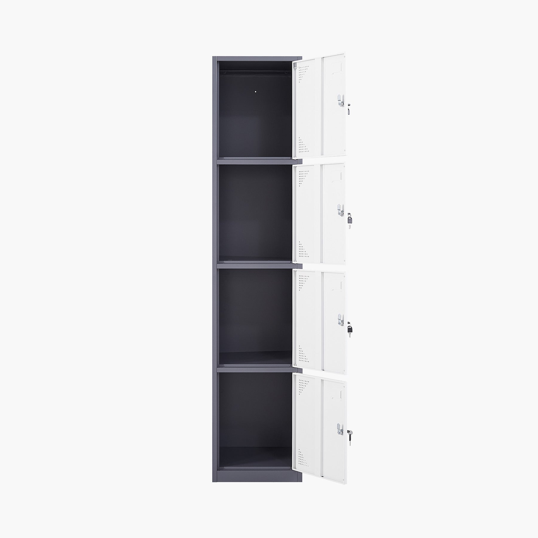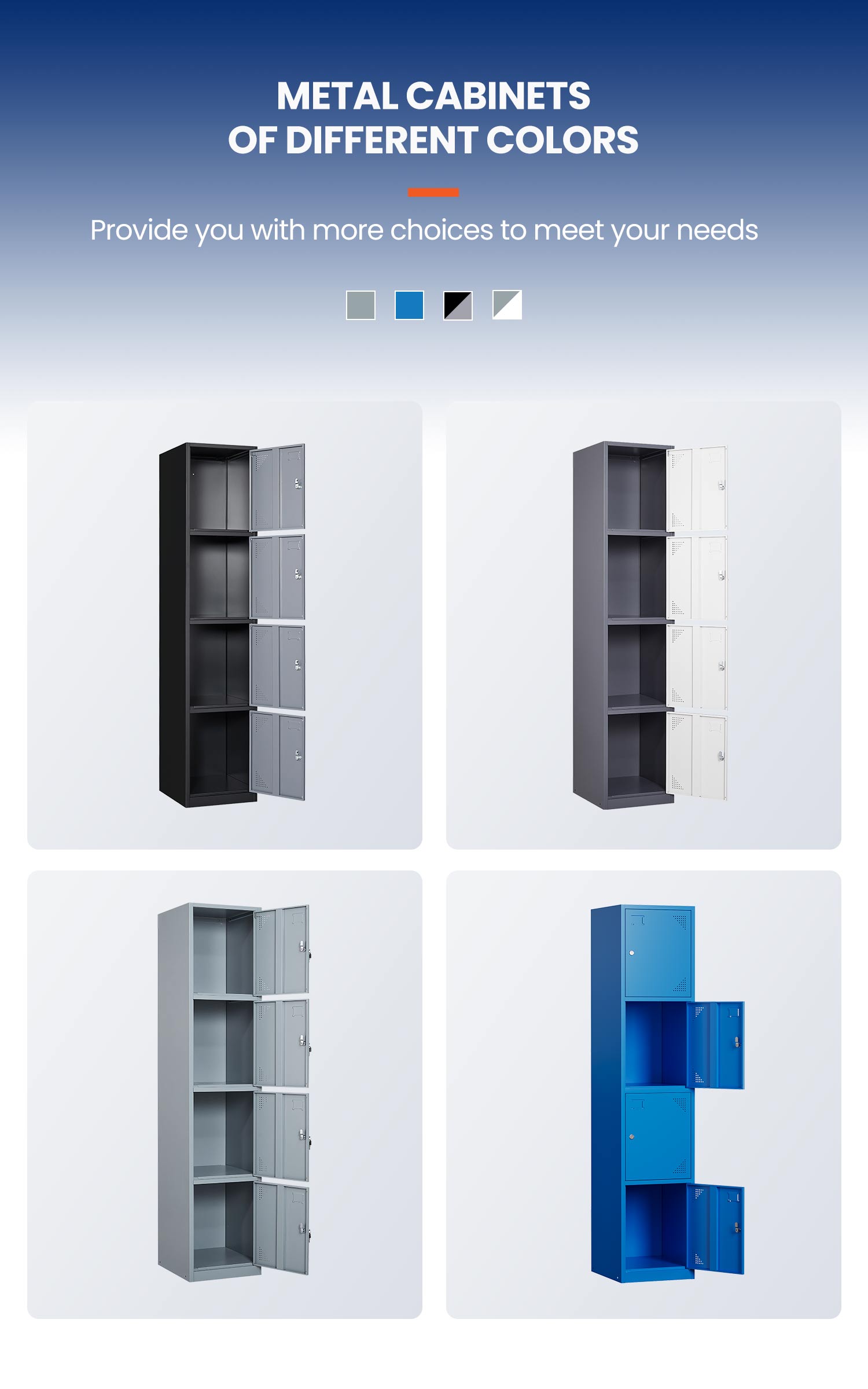 71" heavy-duty 4-door metal locker cabinet with card tags, ventilation holes, and secure locks. Each compartment provides generous storage for employees, gym users, students, or households. Made from durable steel, it combines functionality, security, and easy assembly—ideal for offices, schools, gyms, or home use.