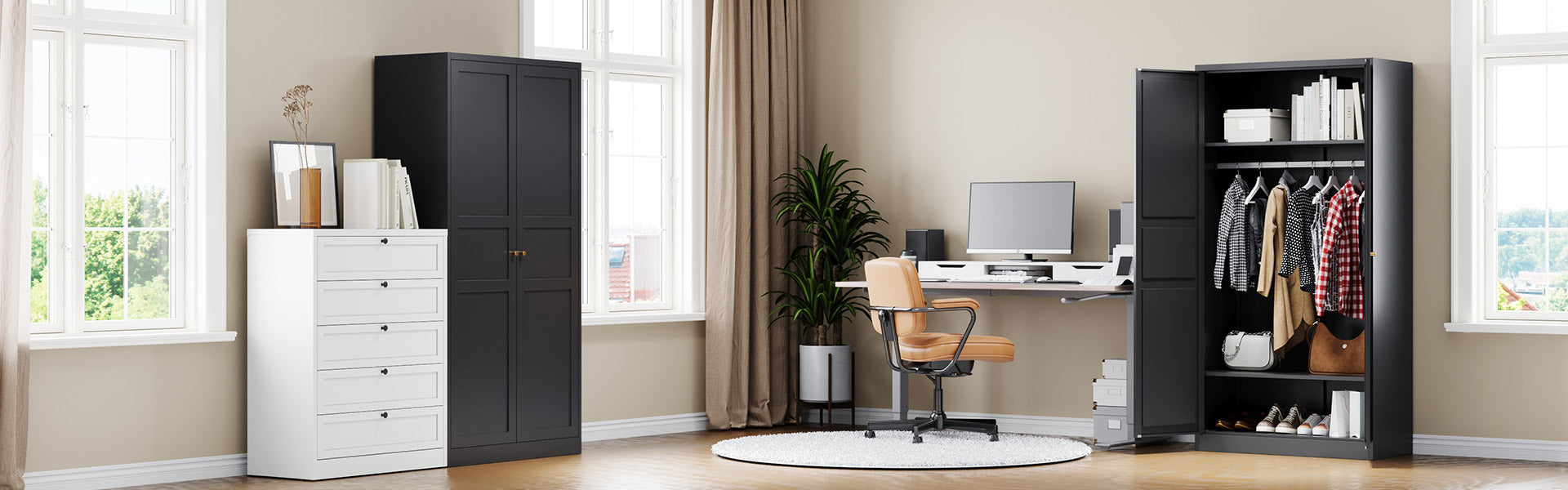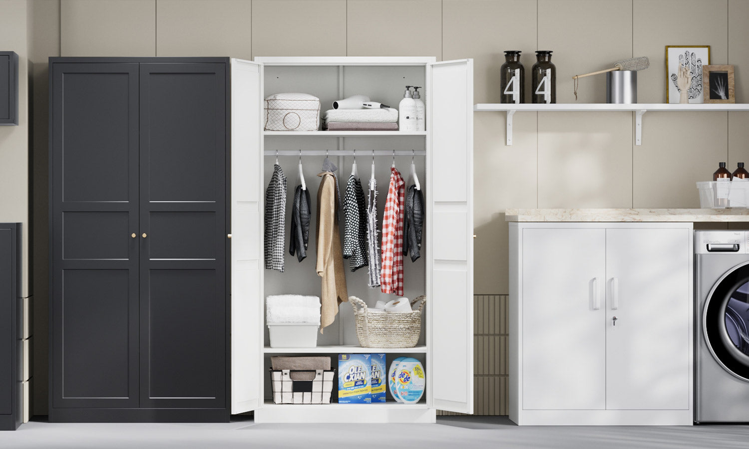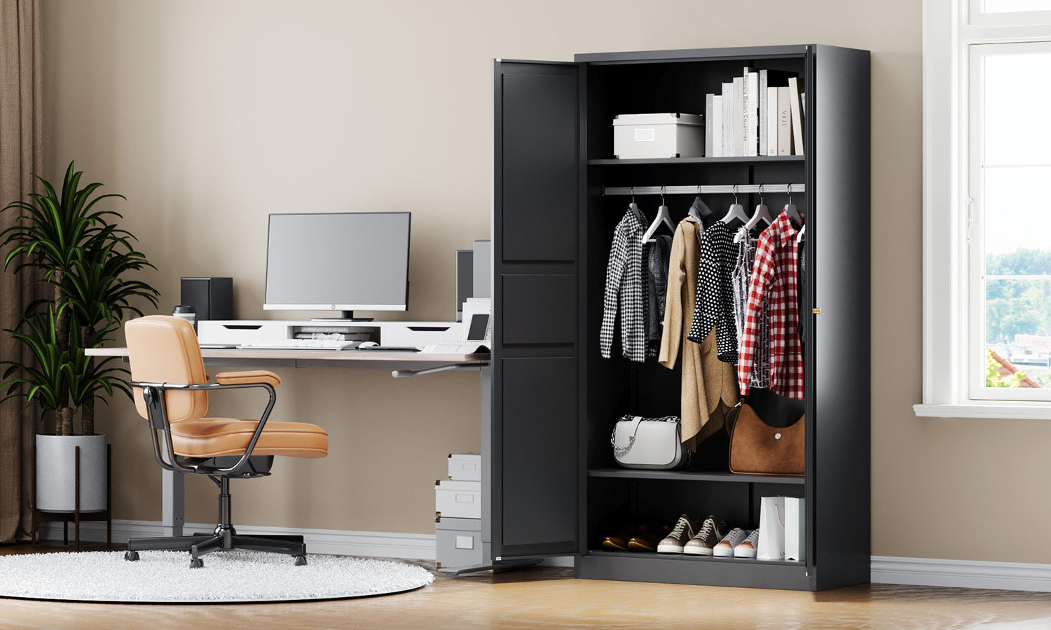 Superior Materials: Large thickened cold-rolled steel plates with electrostatic powder coating; scratch- and wear-resistant, easy to clean, and more durable than wooden wardrobes.
