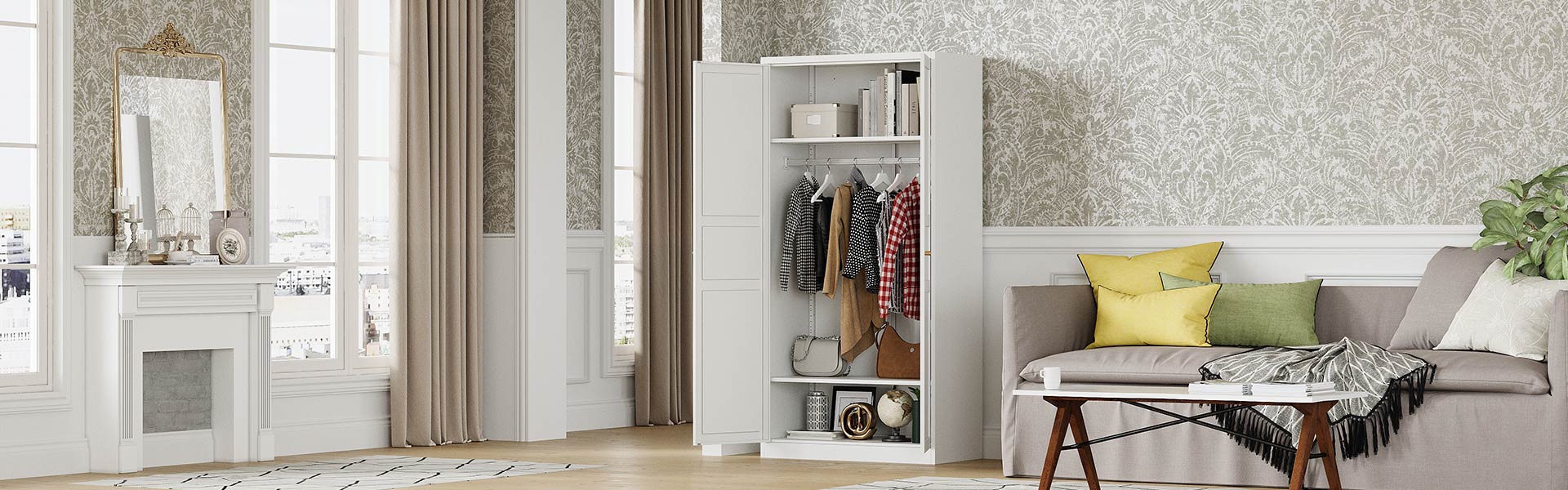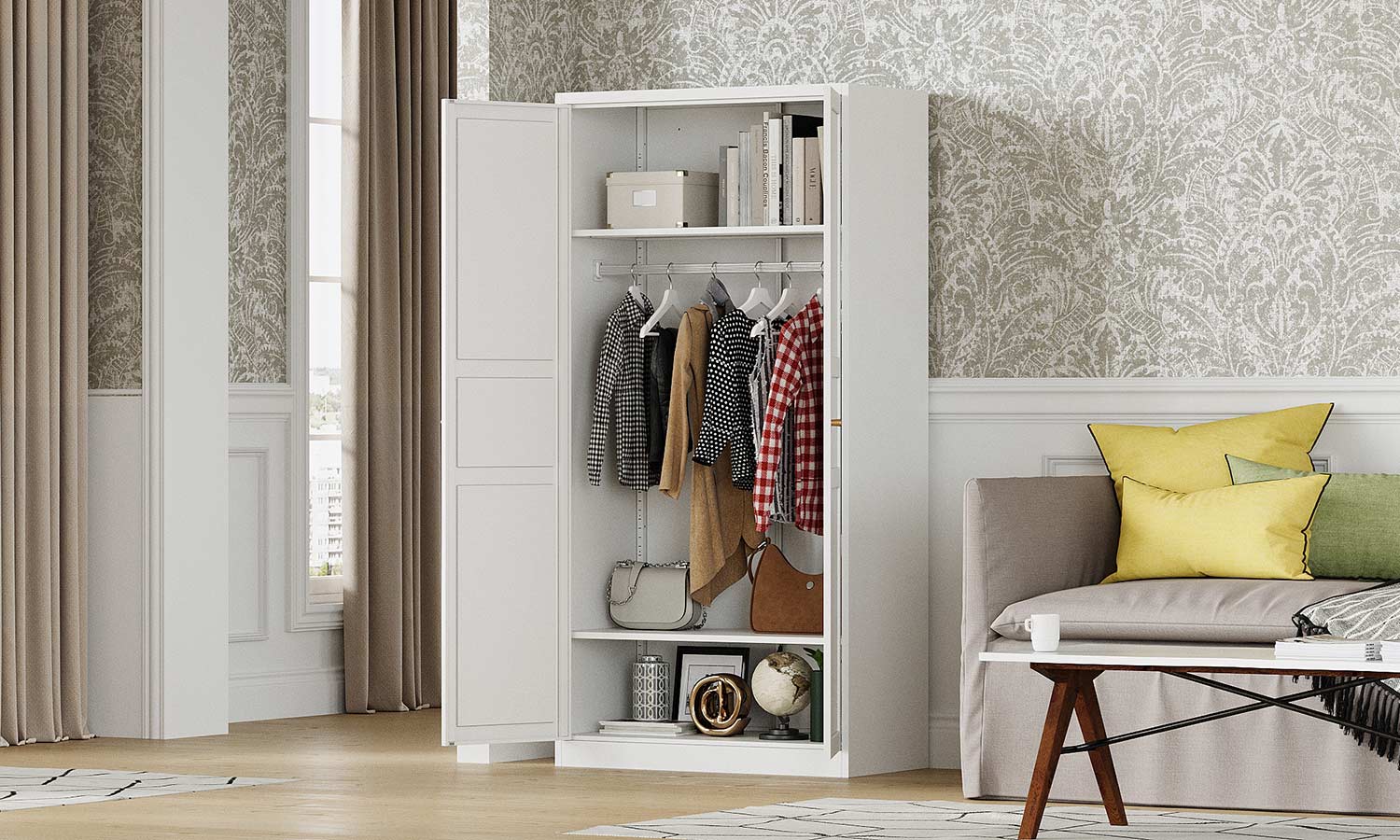 Spacious and Flexible Storage: 72" H × 36" W × 18" D; includes hanging rod and adjustable shelves for clothes, accessories, office supplies, and more.