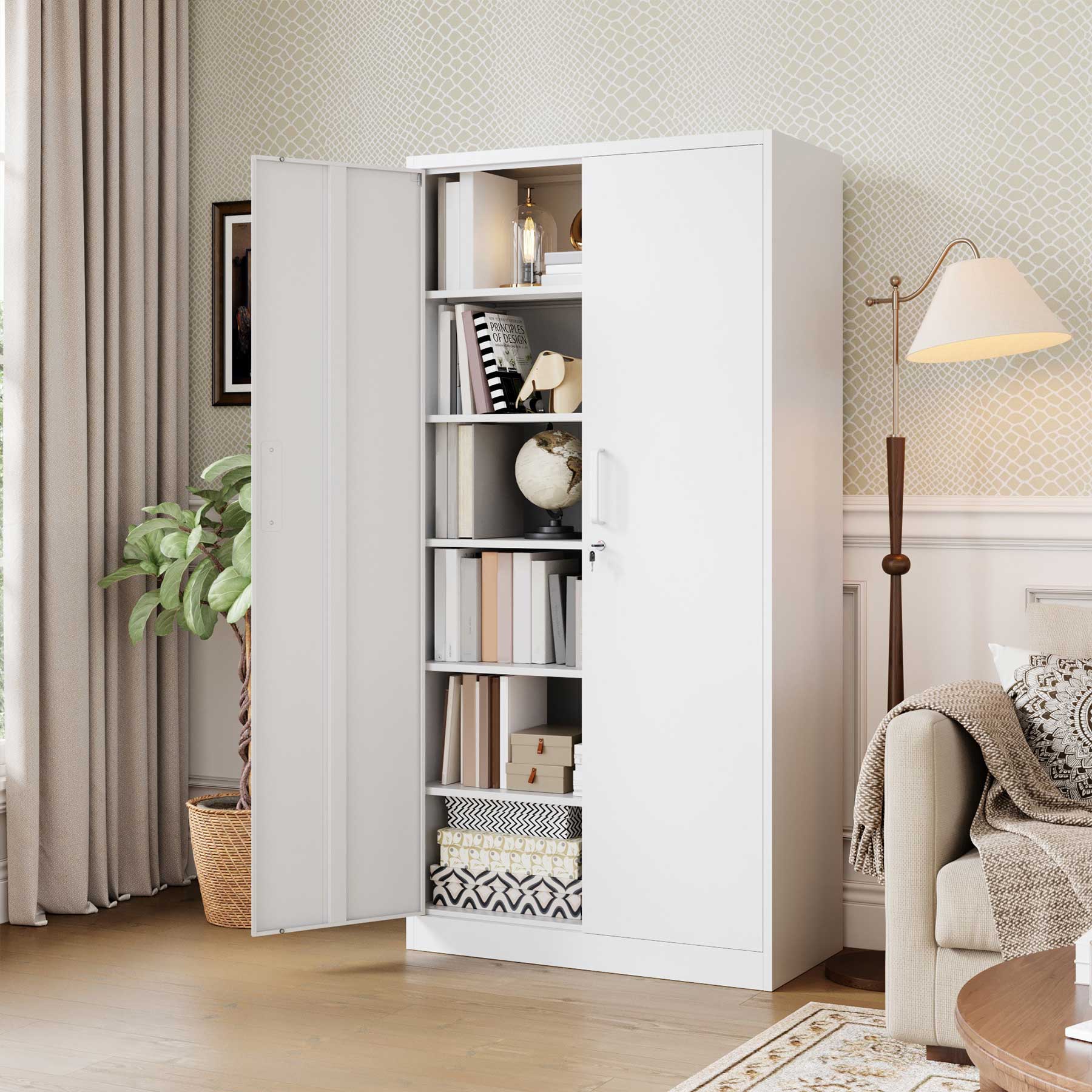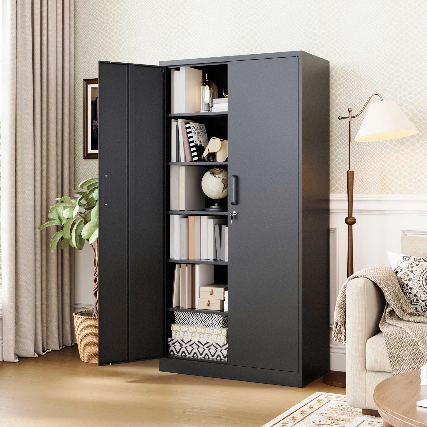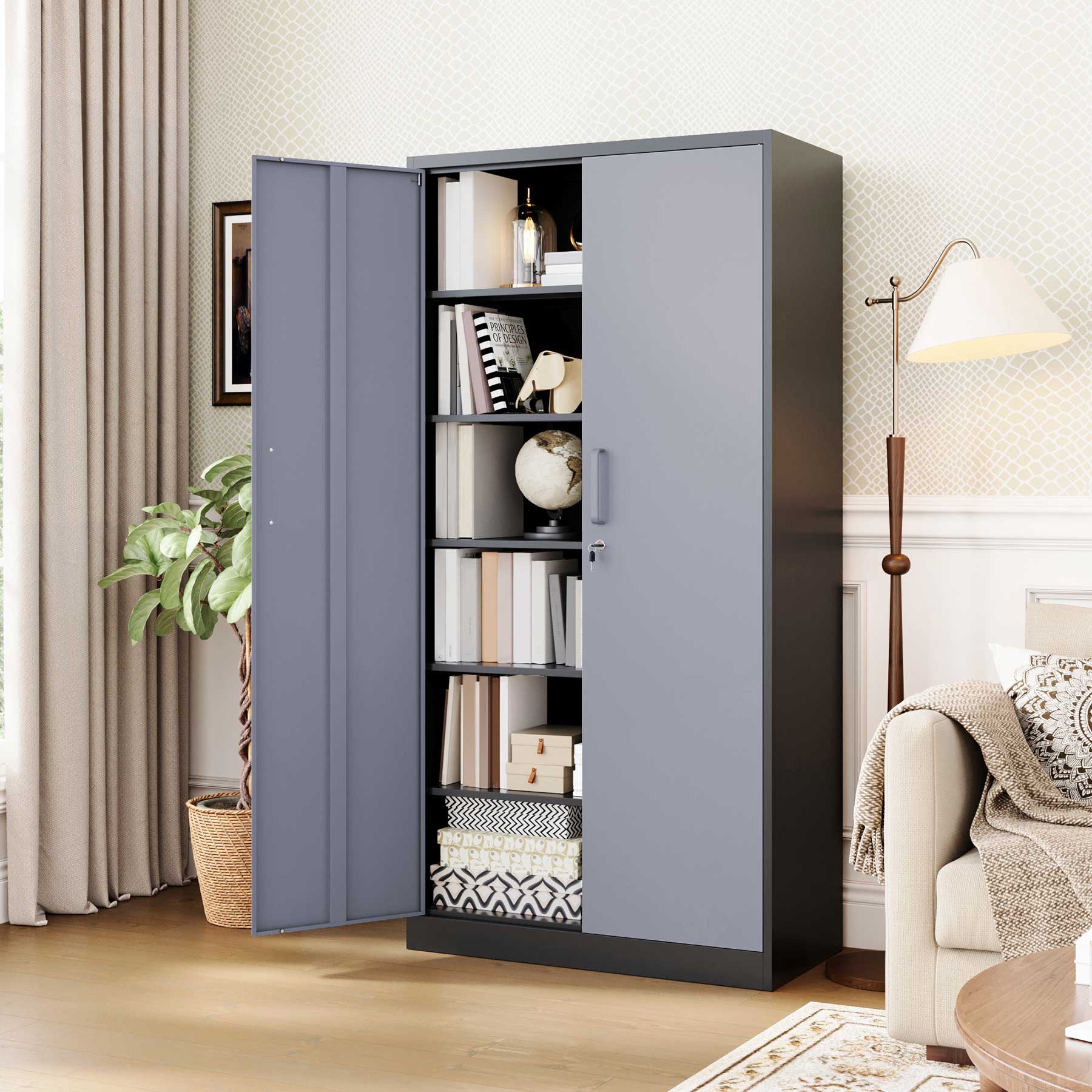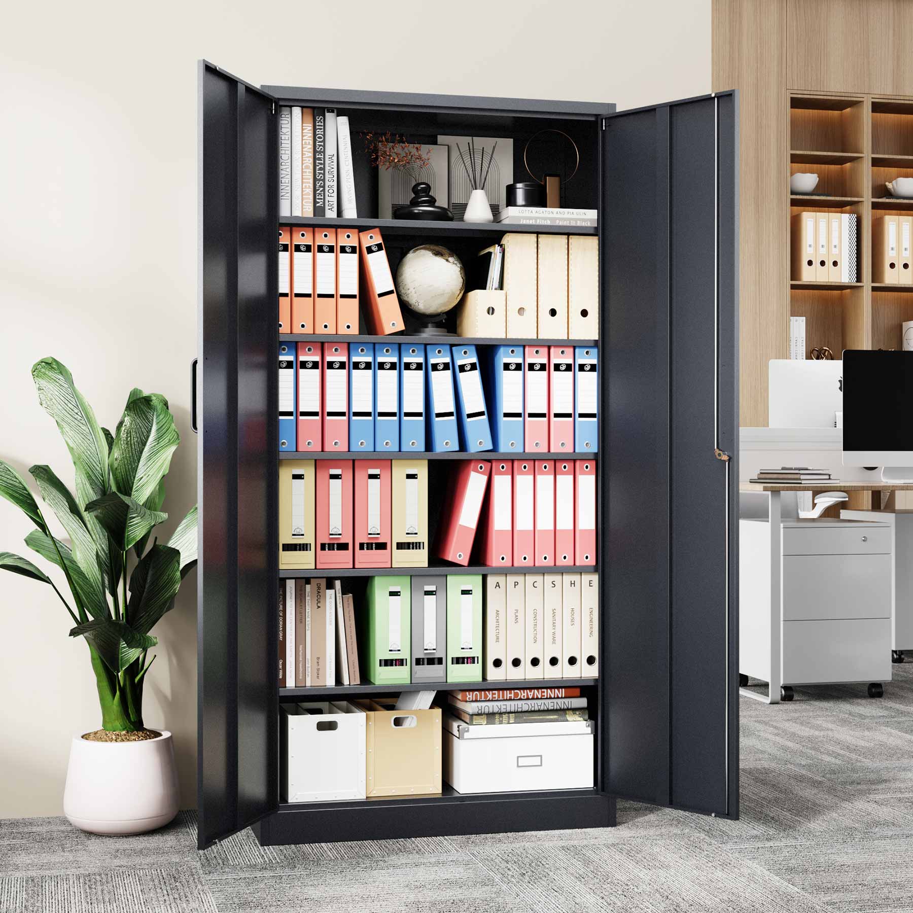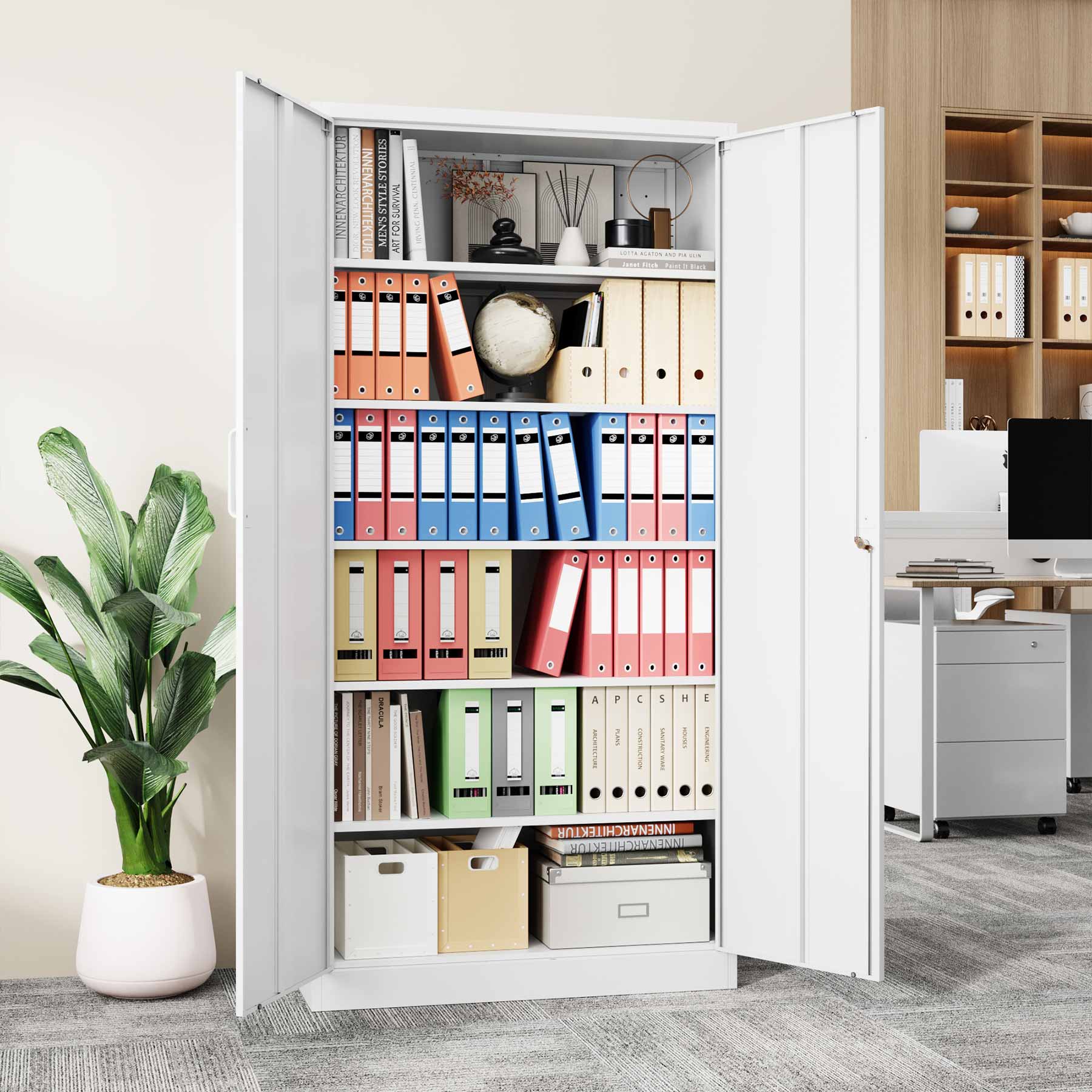 - Yizosh 71"H Lockable Metal Storage Cabinet with 2 Doors & 5 Adjustable Shelves