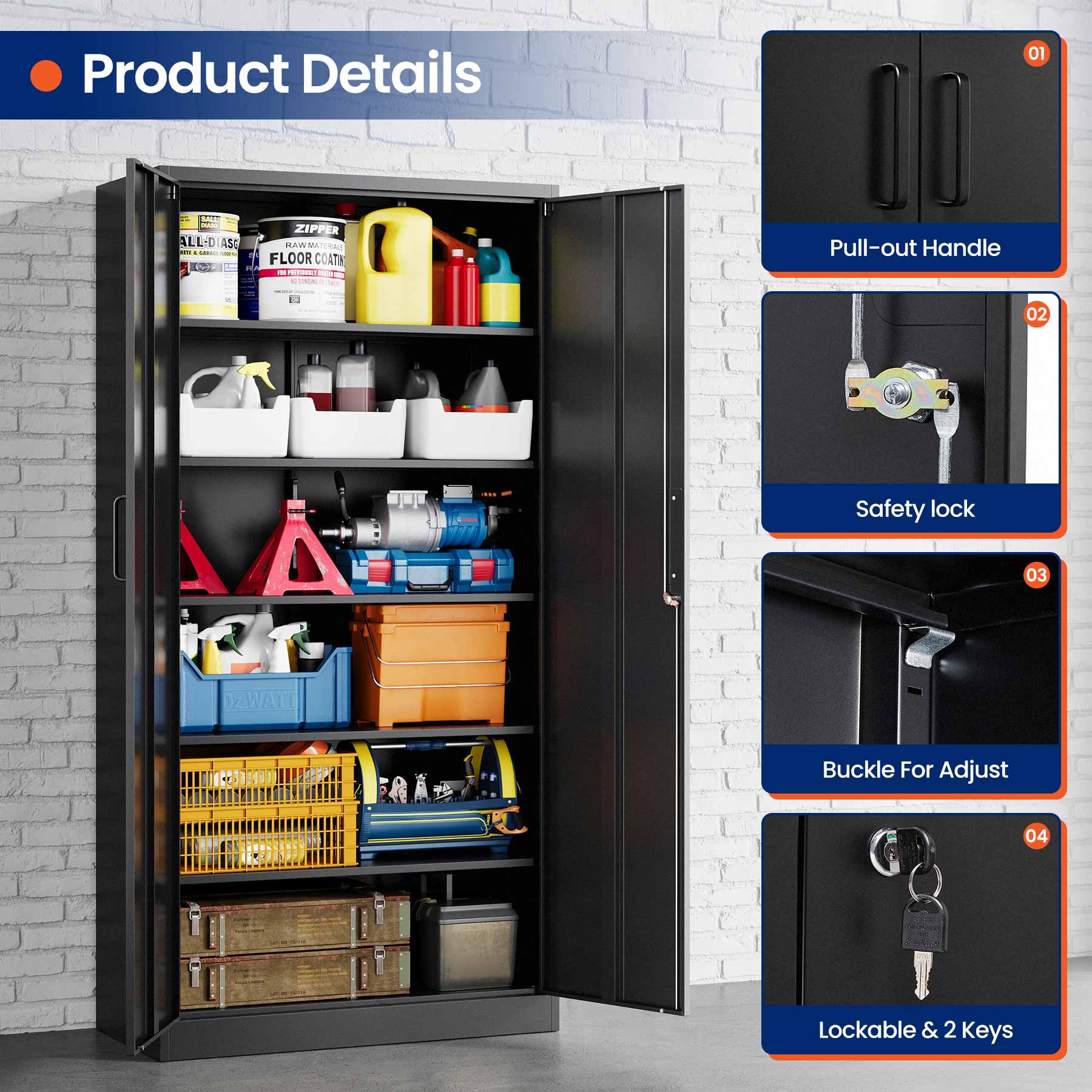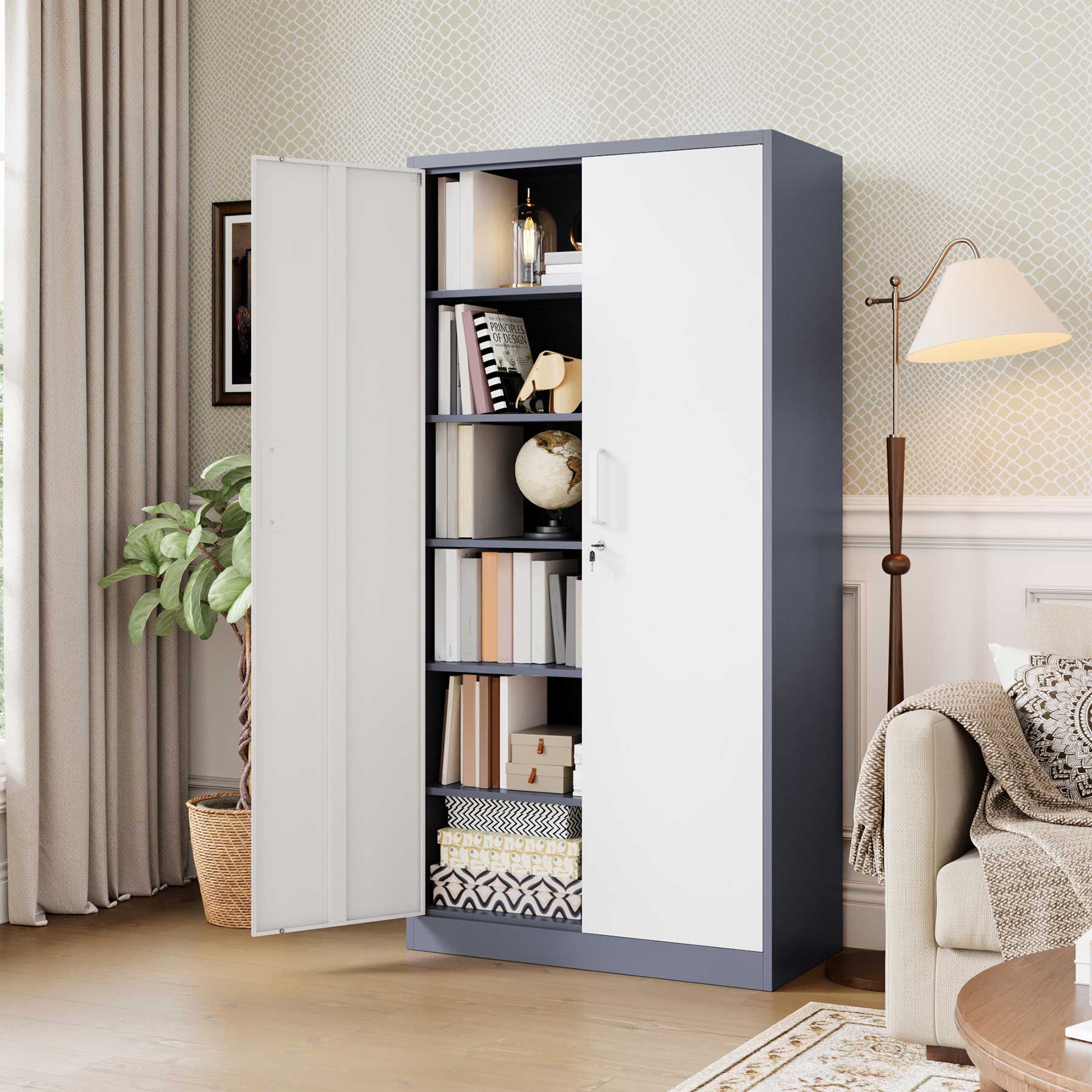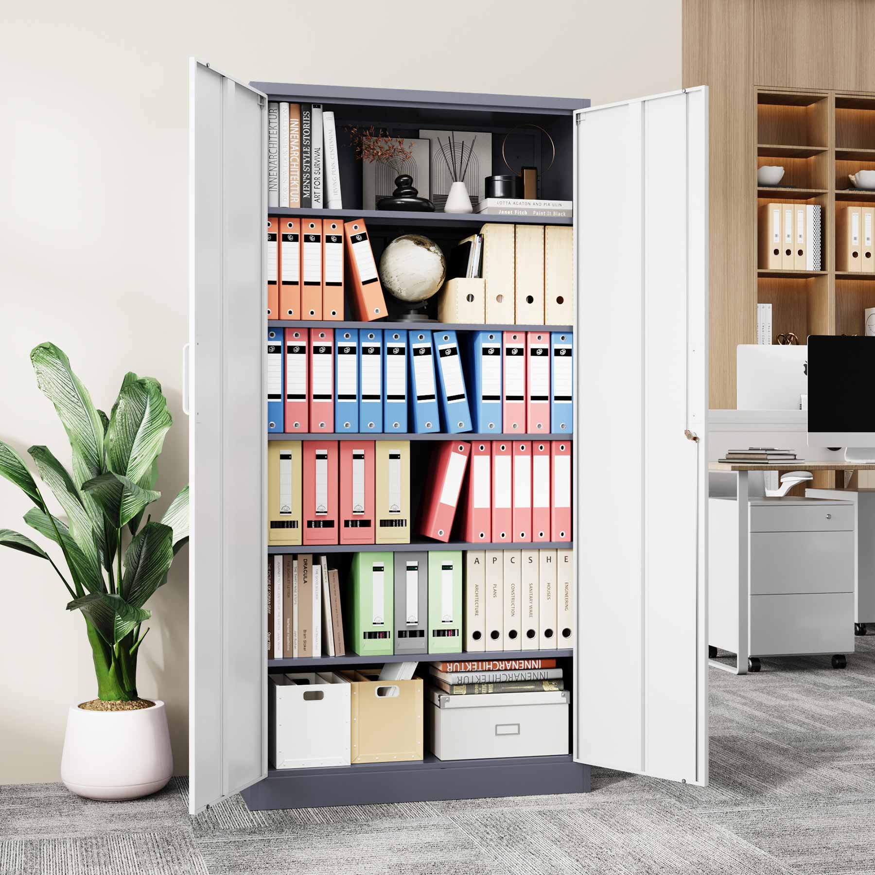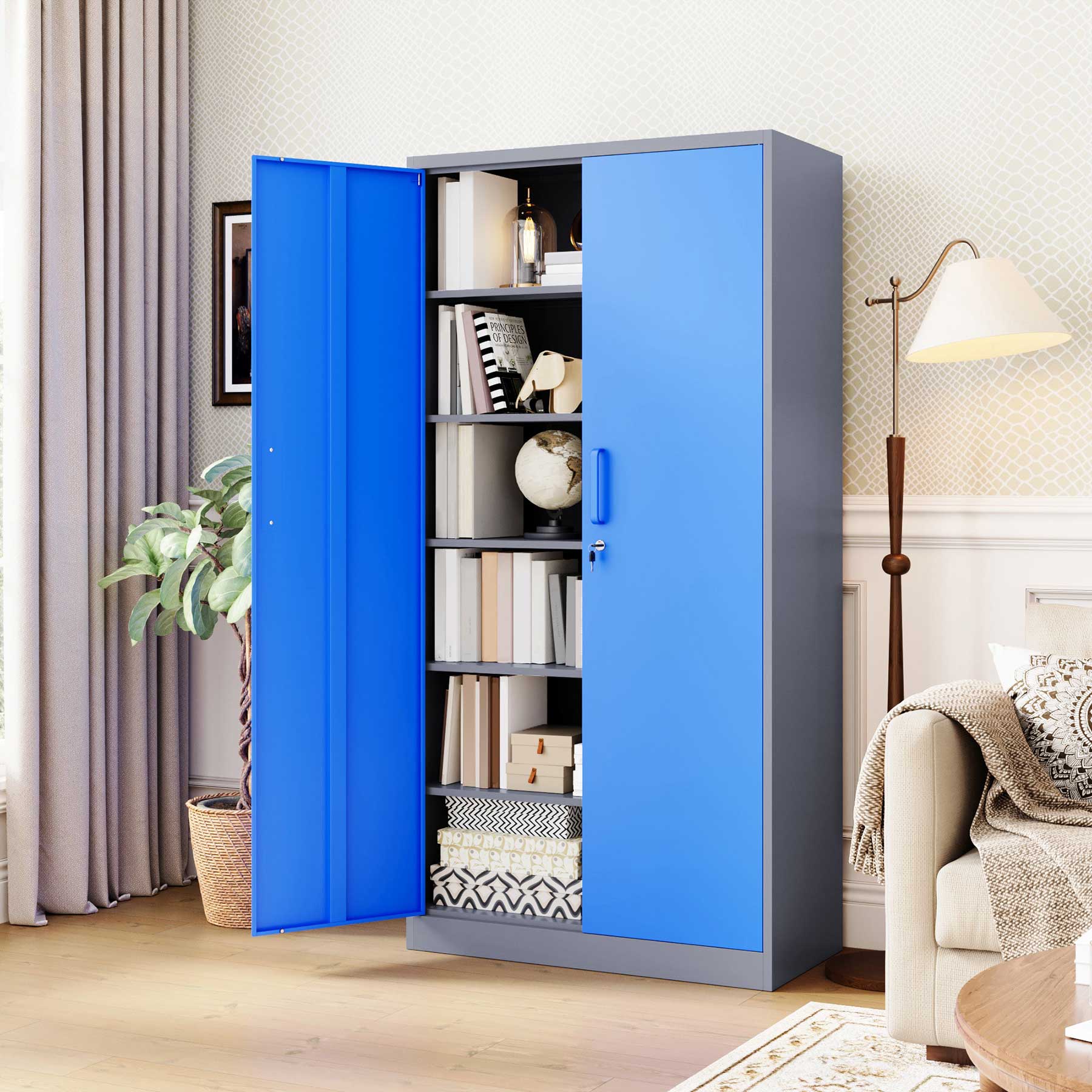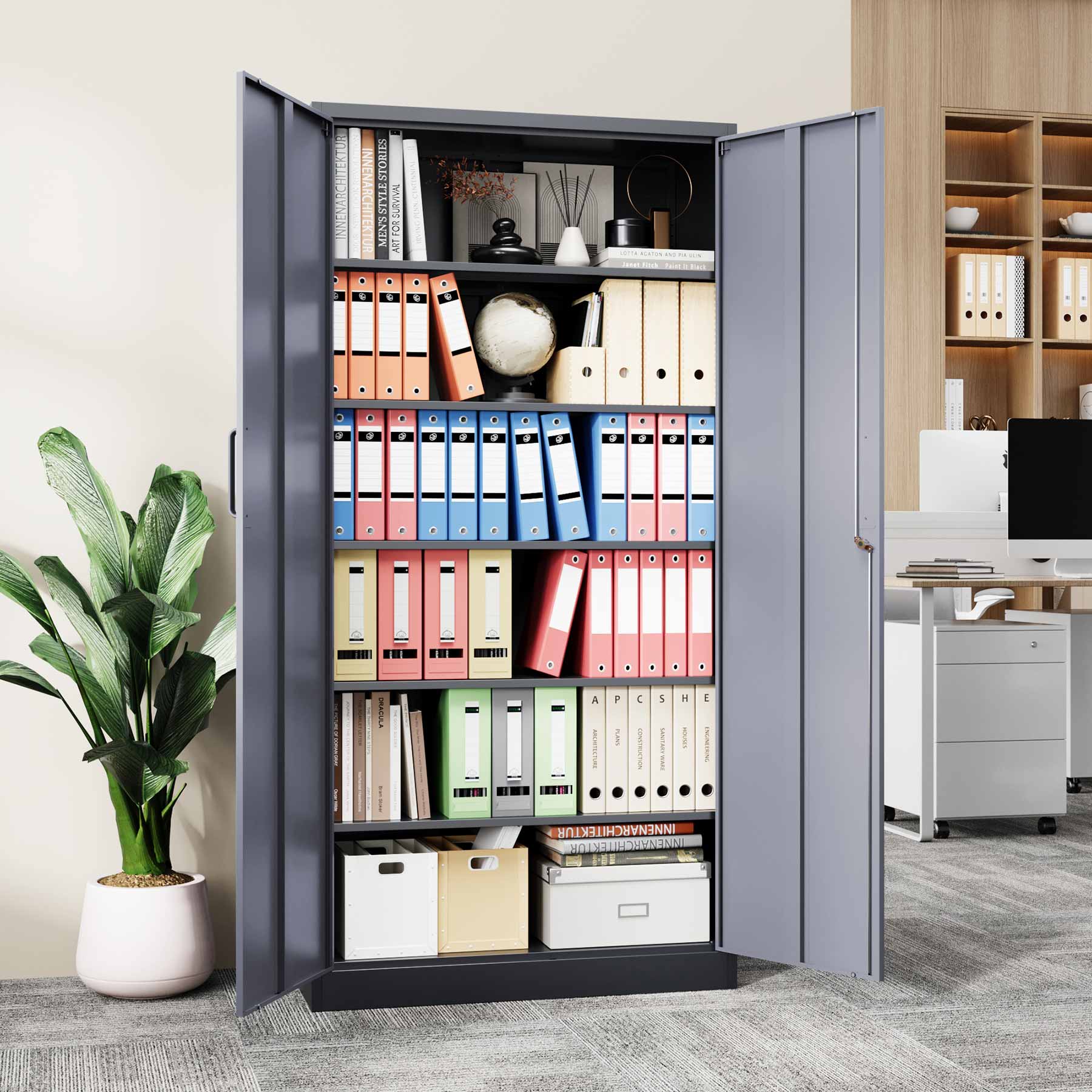 - Yizosh 71"H Lockable Metal Storage Cabinet with 2 Doors & 5 Adjustable Shelves
