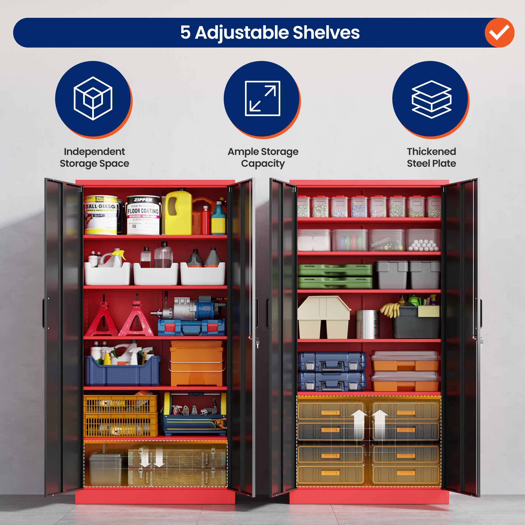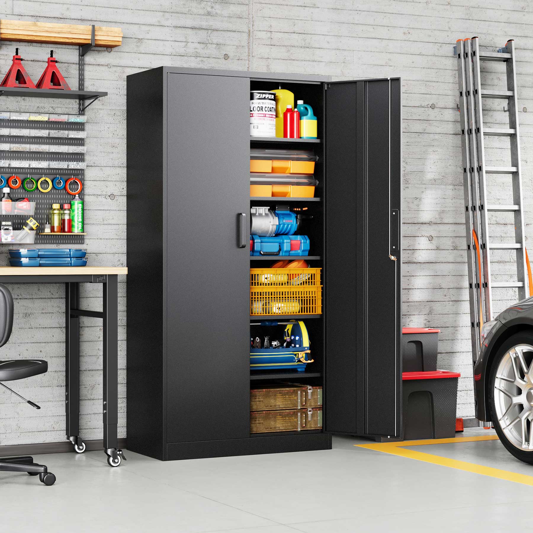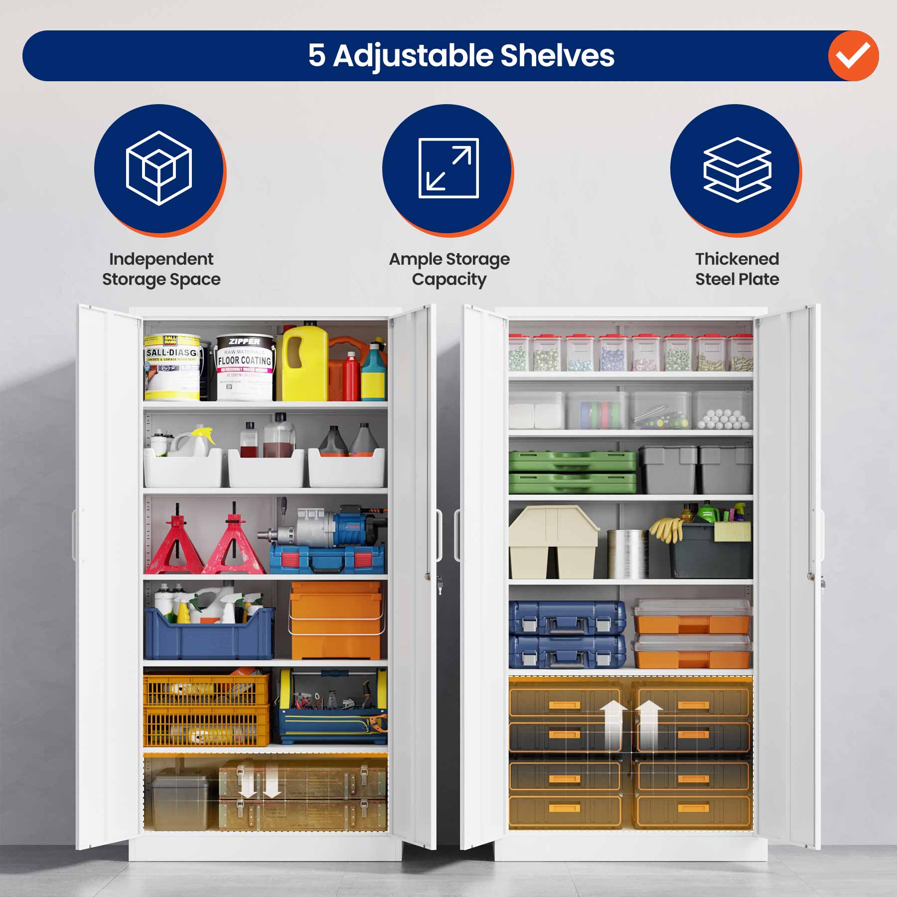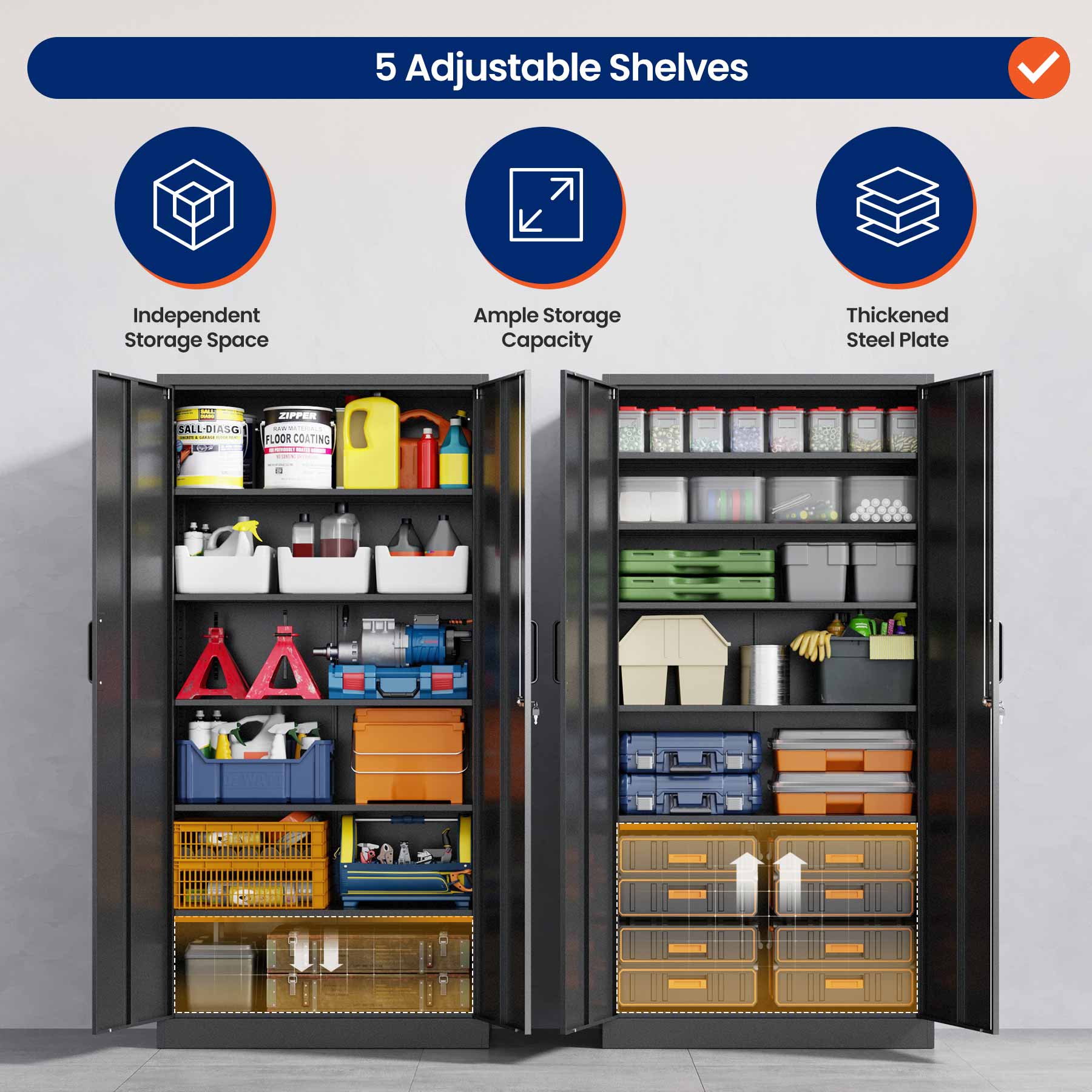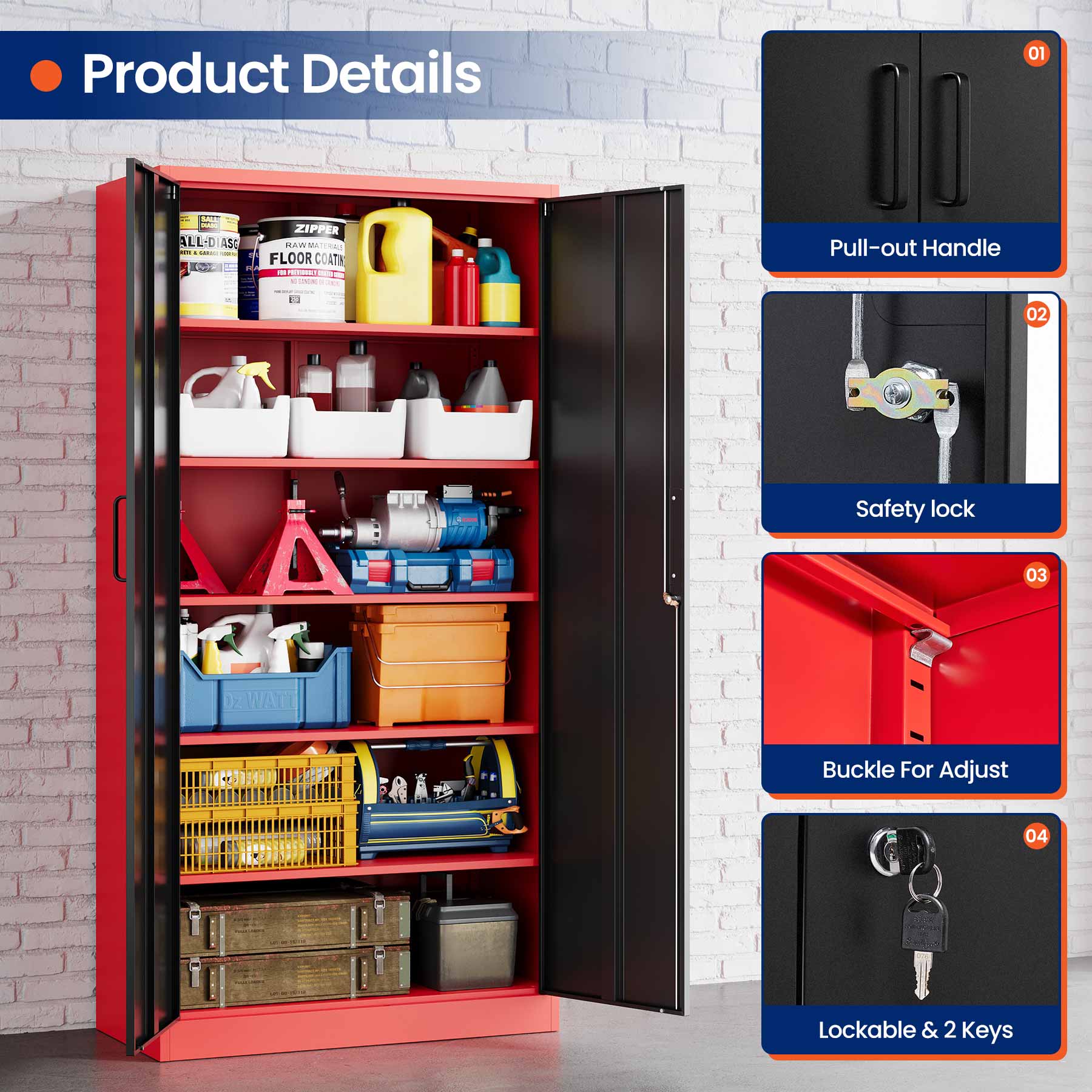 - Yizosh 71"H Lockable Metal Storage Cabinet with 2 Doors & 5 Adjustable Shelves