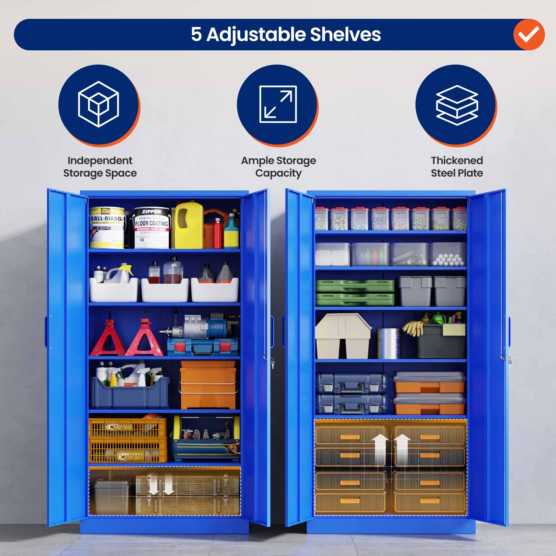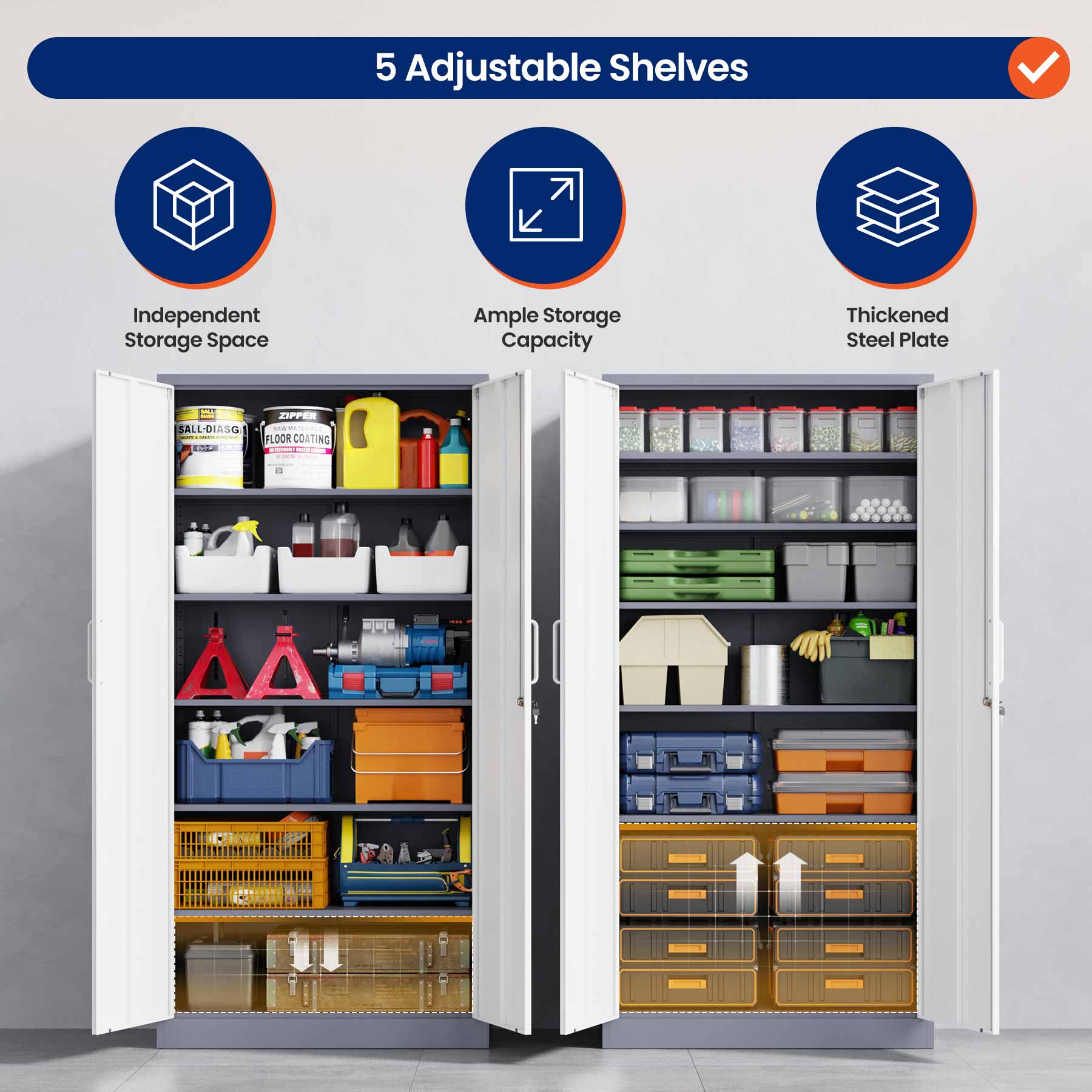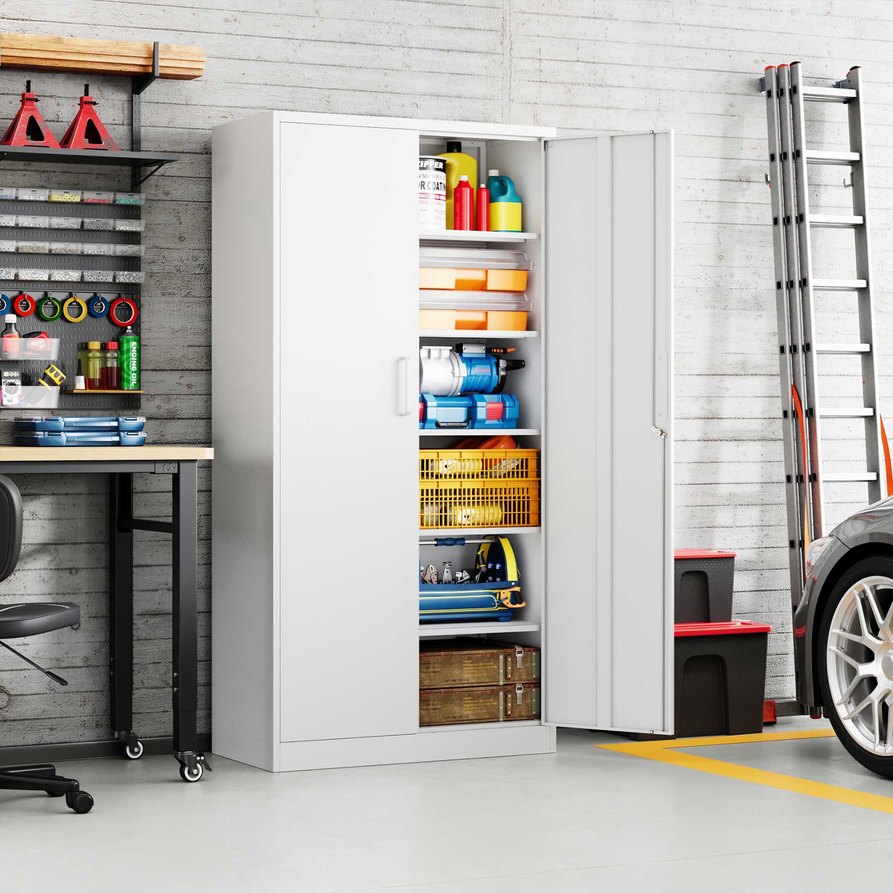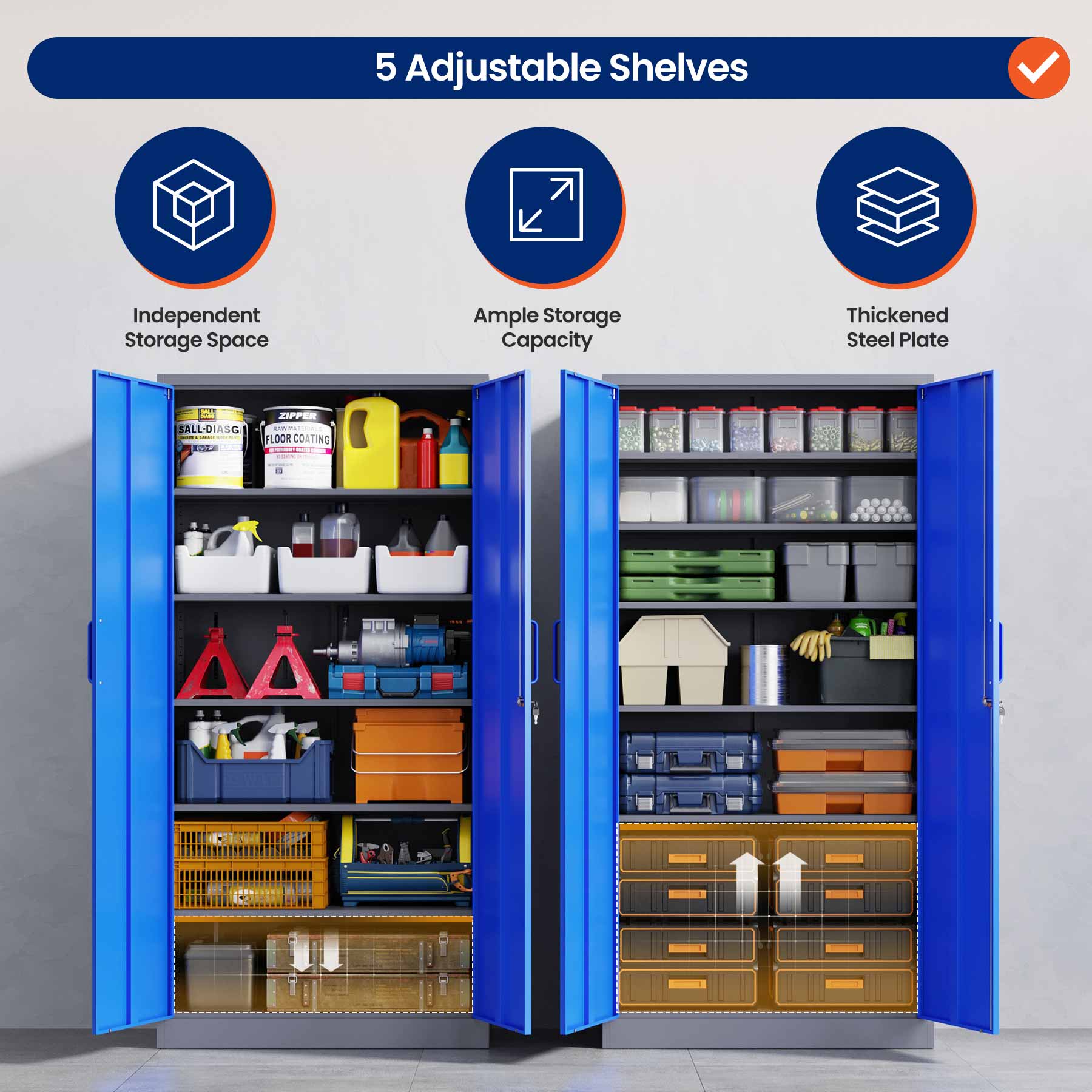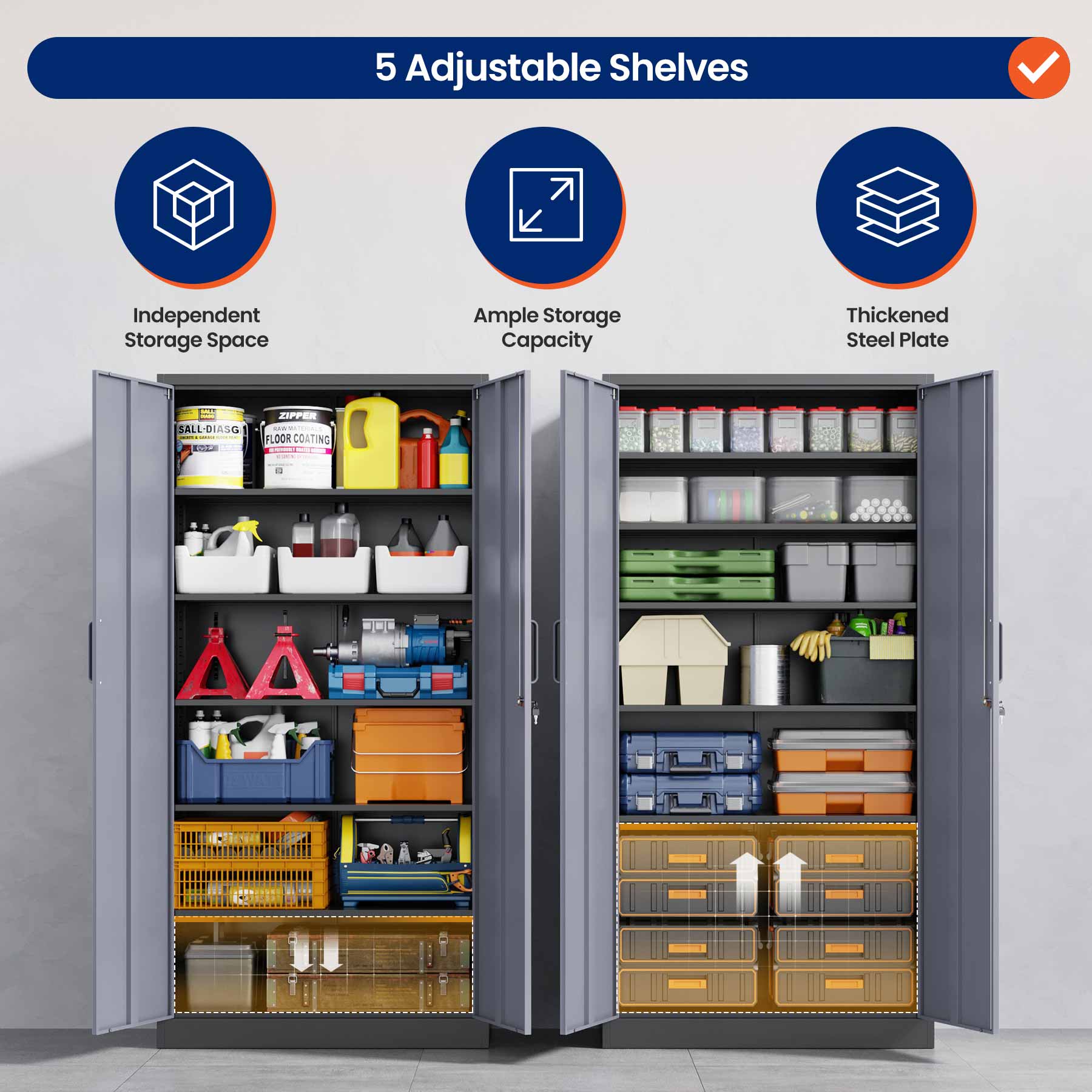 - Yizosh 71"H Lockable Metal Storage Cabinet with 2 Doors & 5 Adjustable Shelves