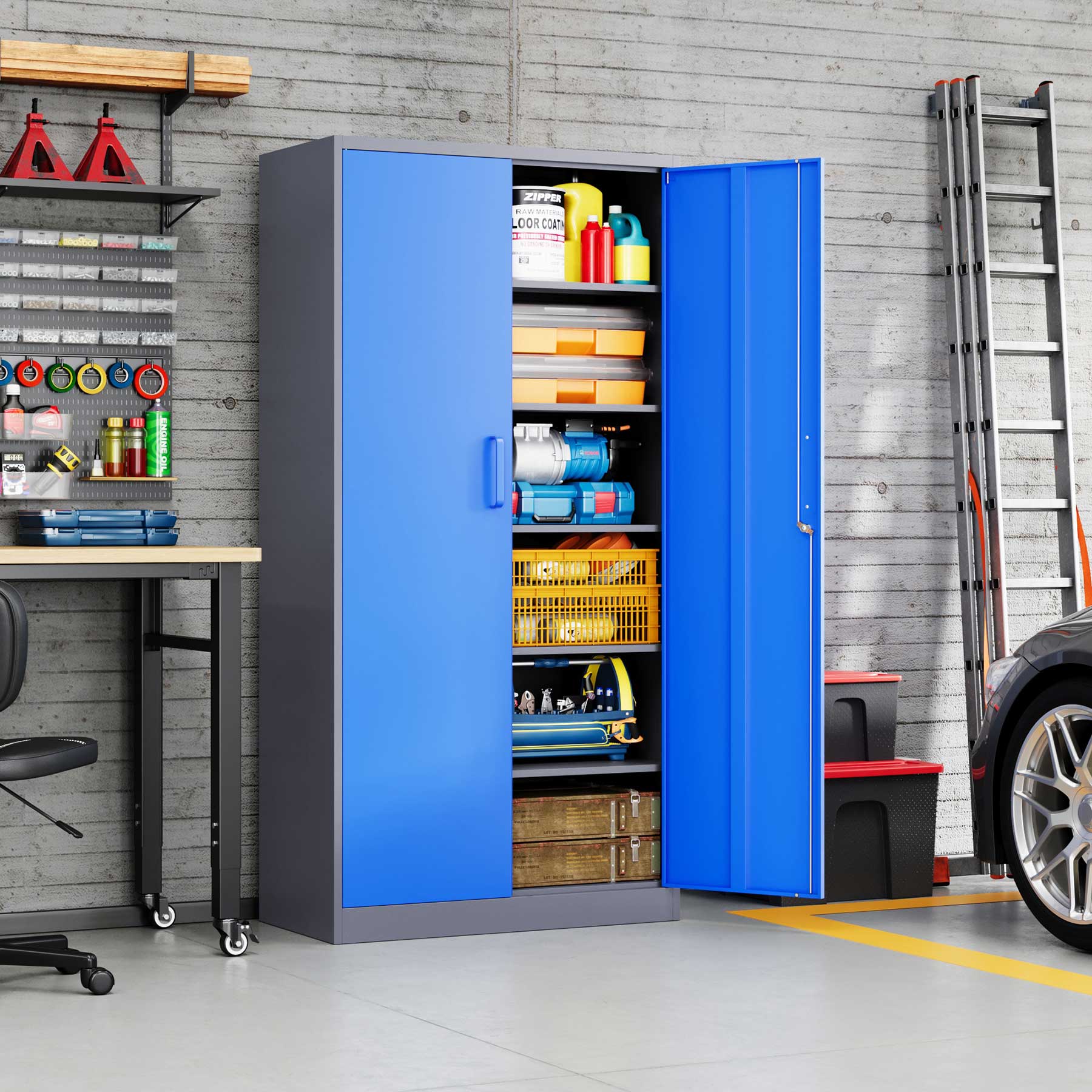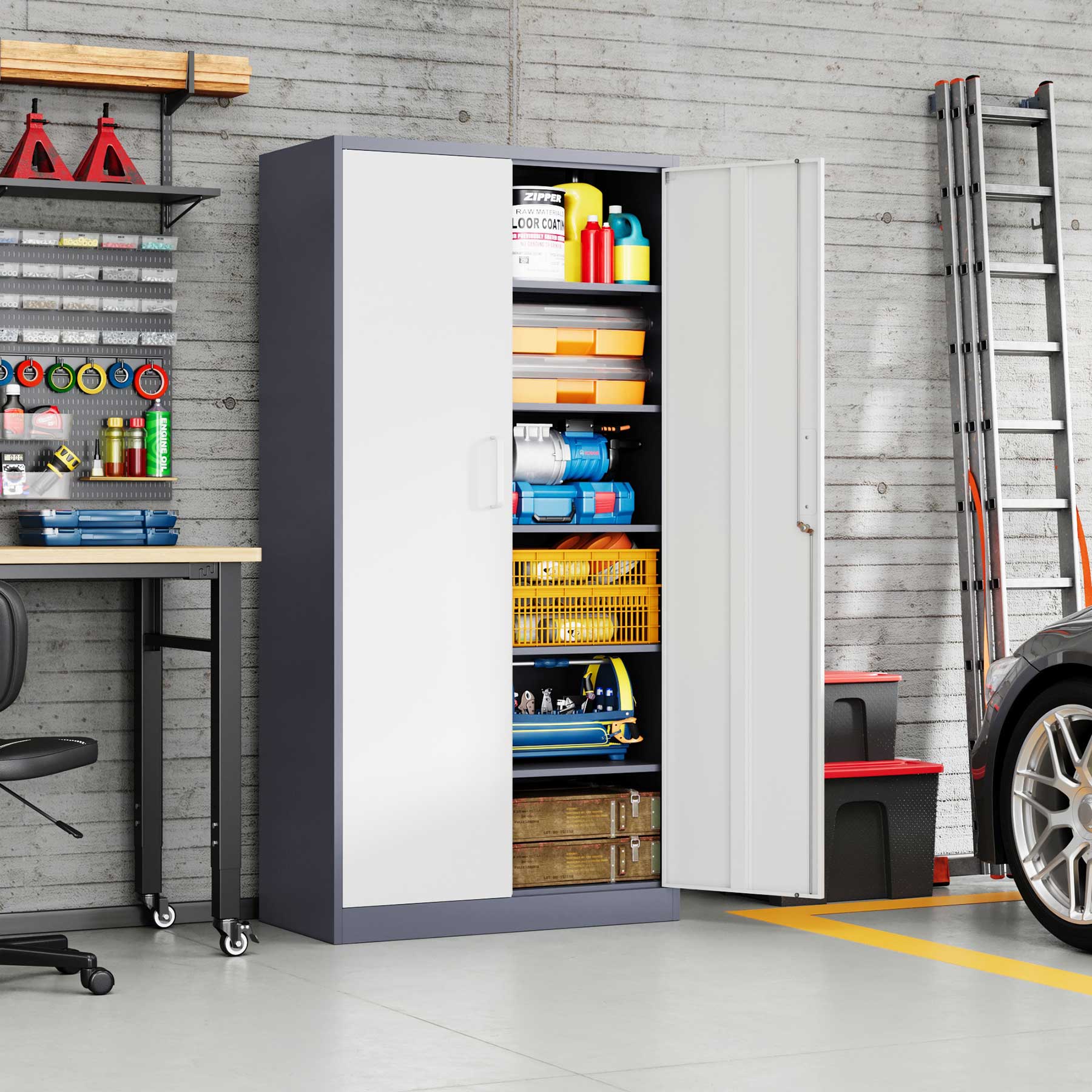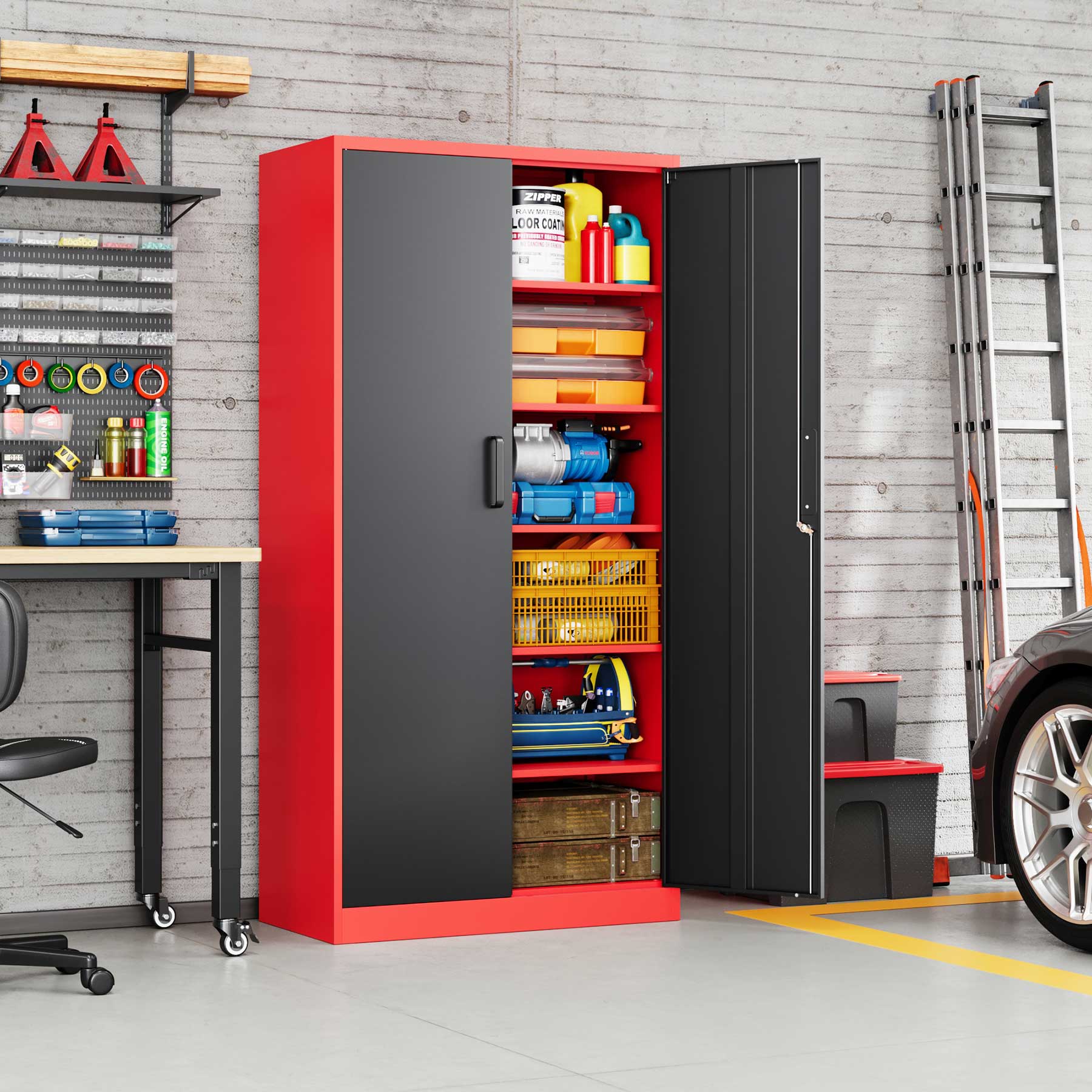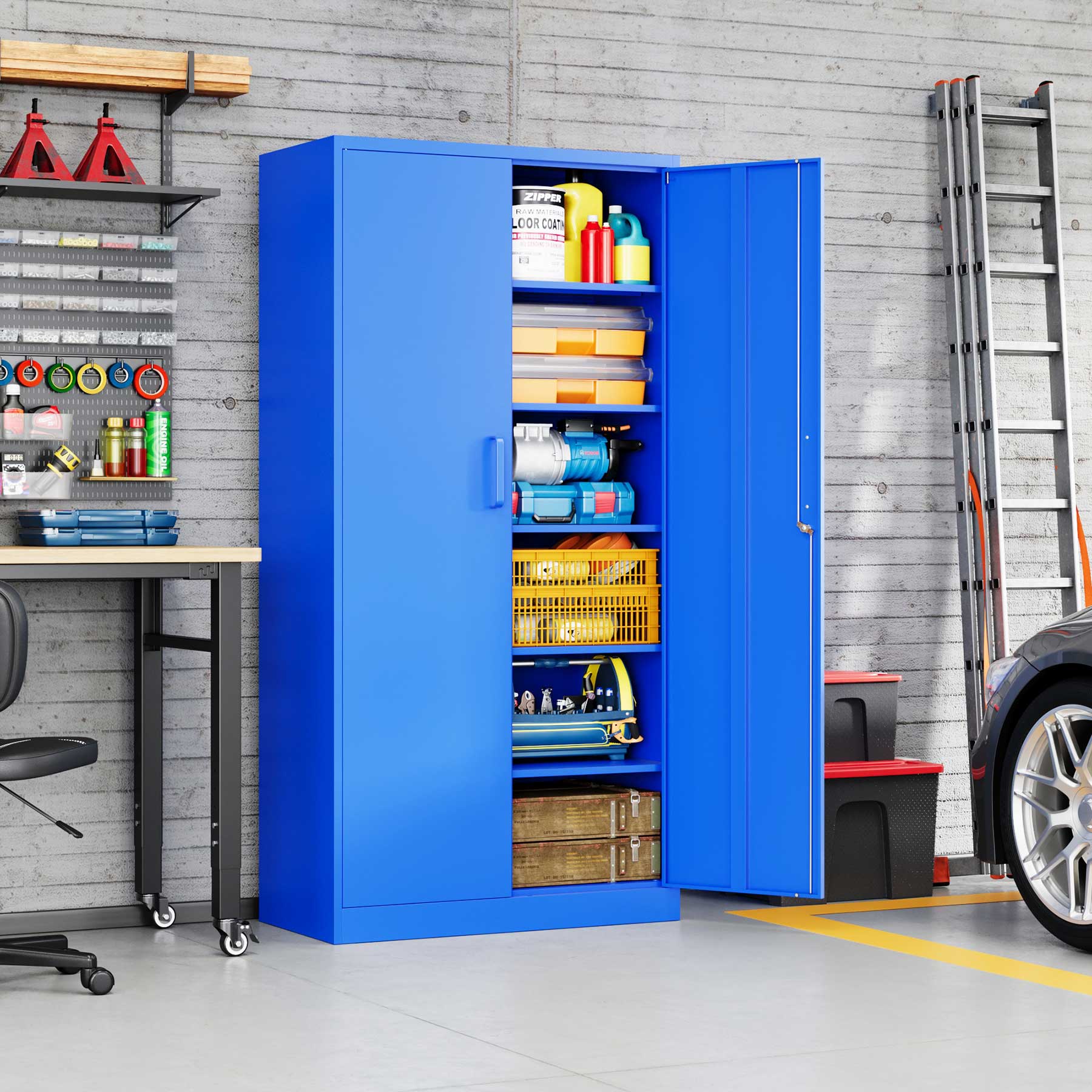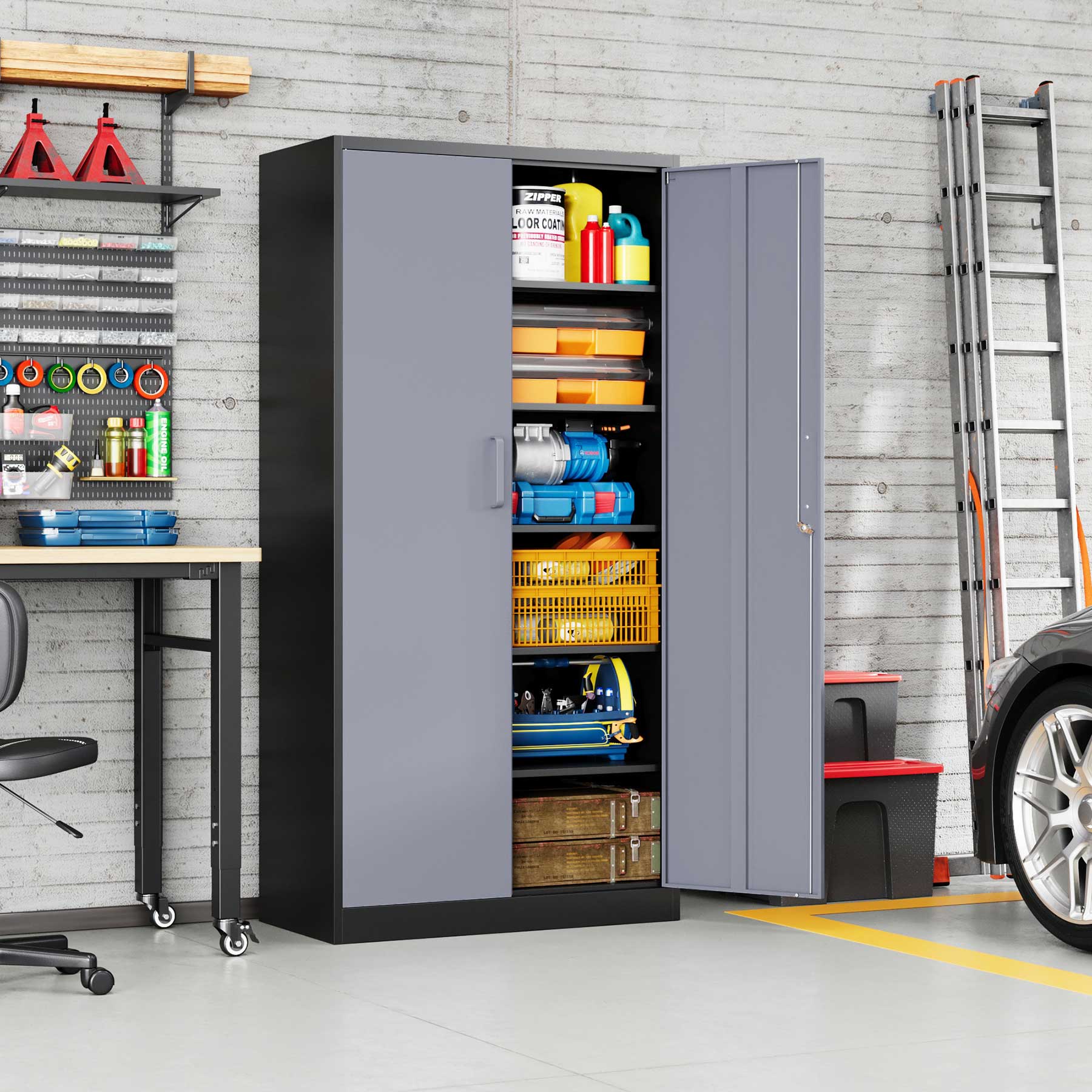 - Yizosh 71"H Lockable Metal Storage Cabinet with 2 Doors & 5 Adjustable Shelves