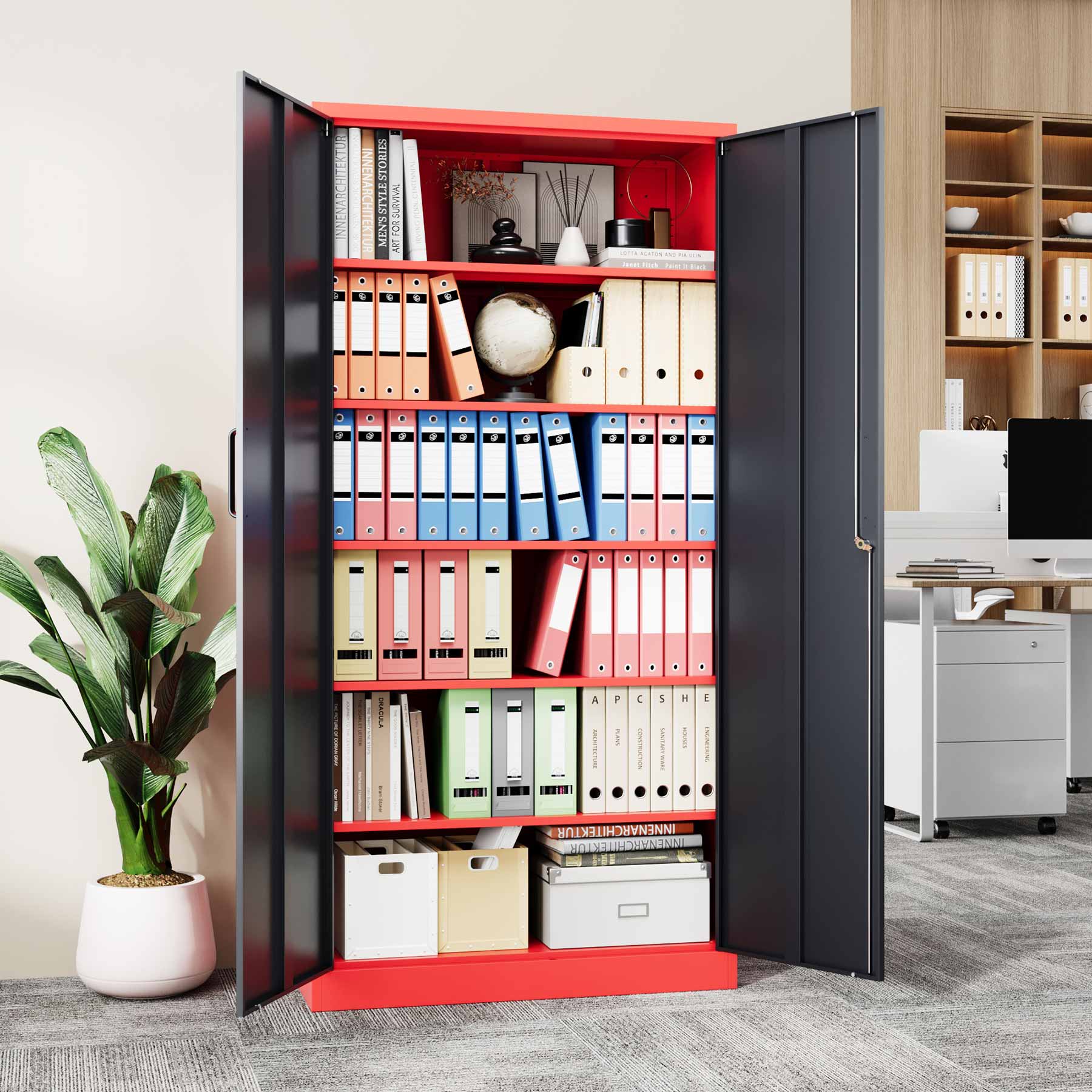 Practical Design: Lockable doors and five adjustable shelves for flexible storage; high-security lock with two keys included.